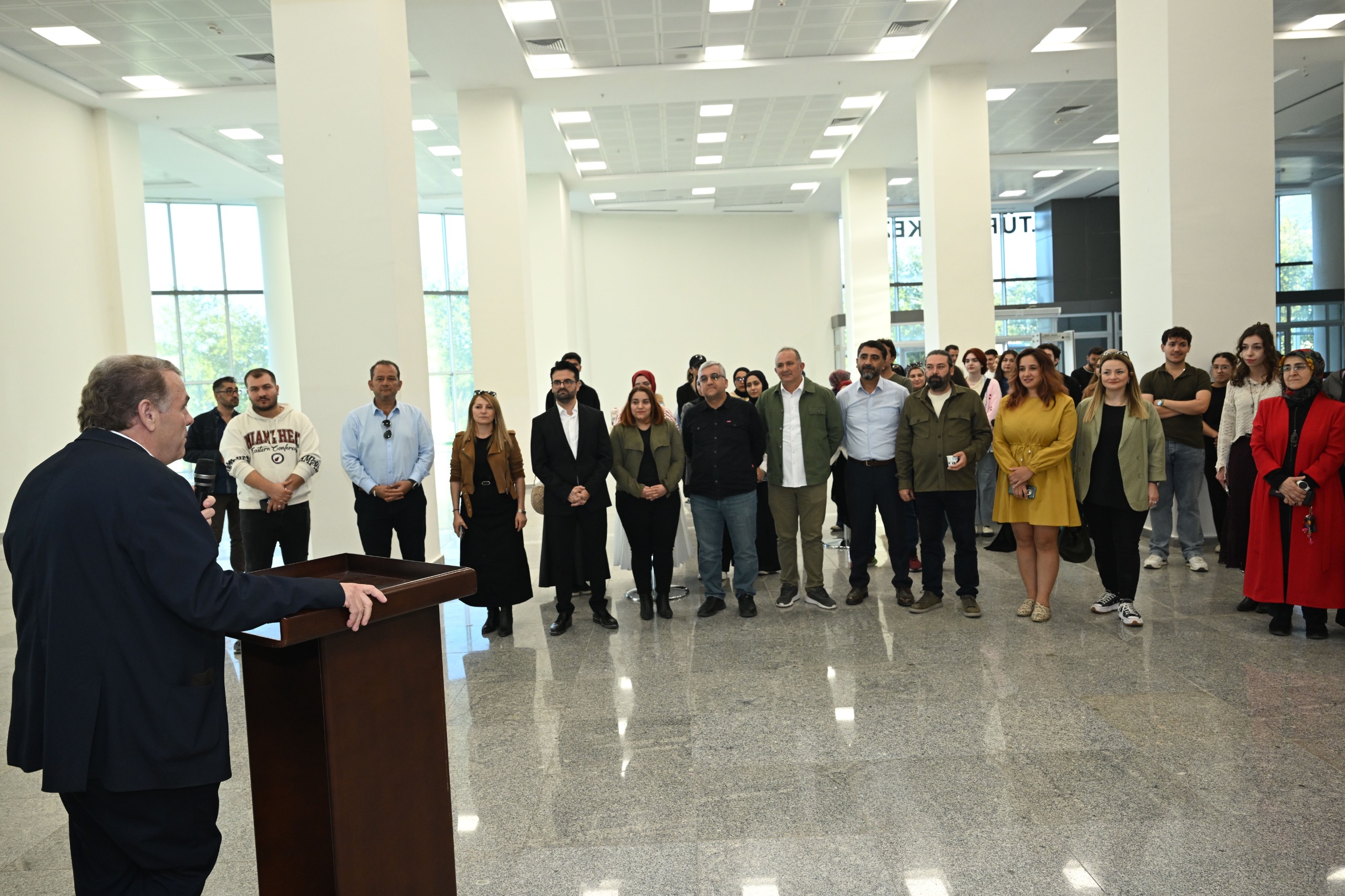Açılışta konuşan Prof. Dr. Akıncı, “Dönemin ilk sergi açılışını gerçekleştirmenin mutluluğunu yaşıyoruz. Emeği geçen herkese ve kıymetli hocamız Dr. Öğr. Üyesi Nazif Gür’e teşekkür ediyorum.” dedi.