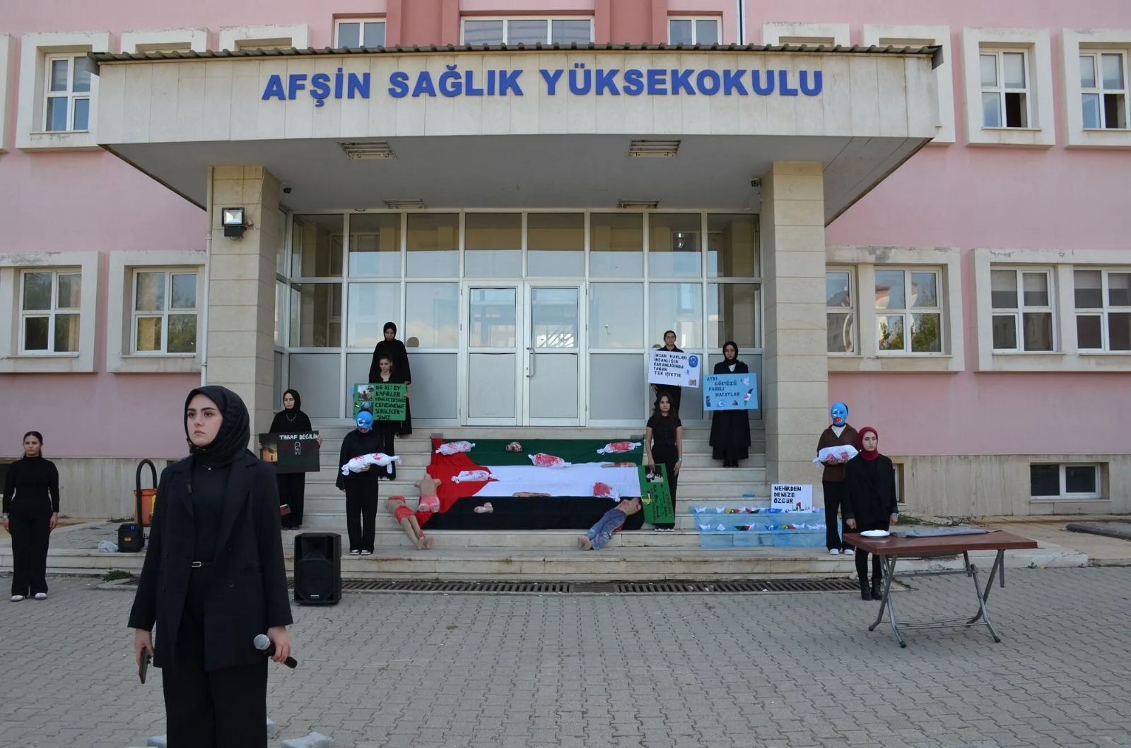Kahramanmaraş Sütçü İmam Üniversitesi (KSÜ) Afşin Sağlık Yüksekokulu öğrencileri, Filistin ve Doğu Türkistan’da yaşanan insanlık dramına dikkat çekmek amacıyla anlamlı bir etkinlik gerçekleştirdi.