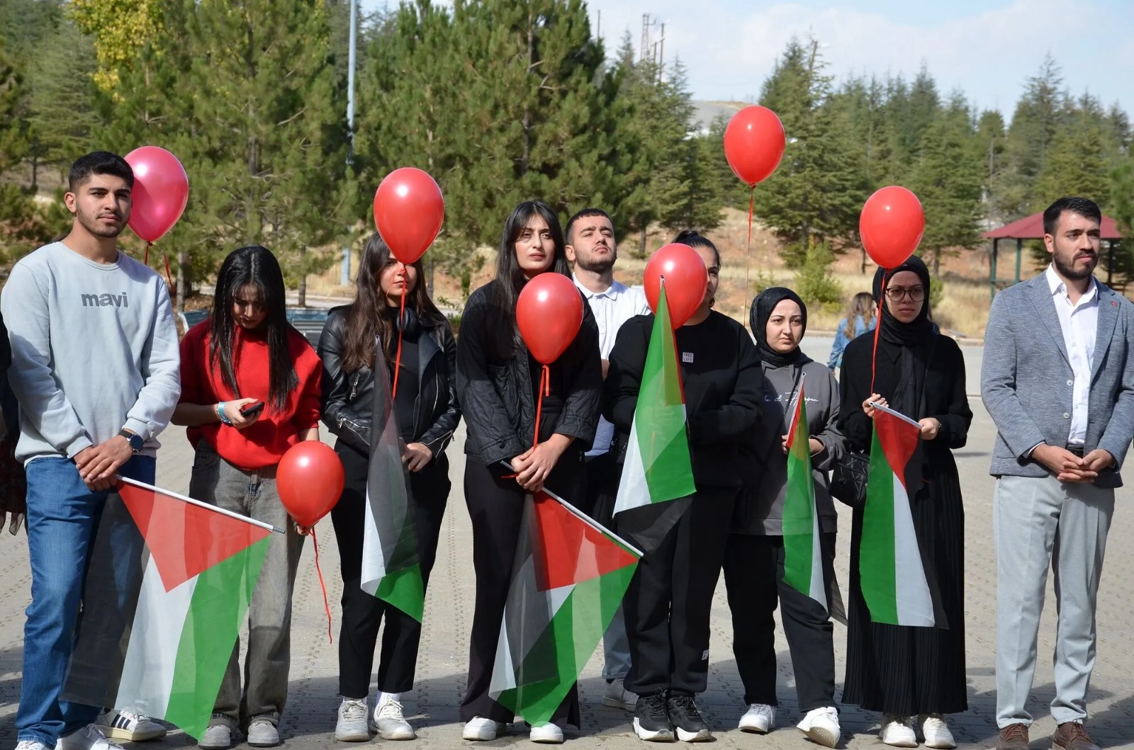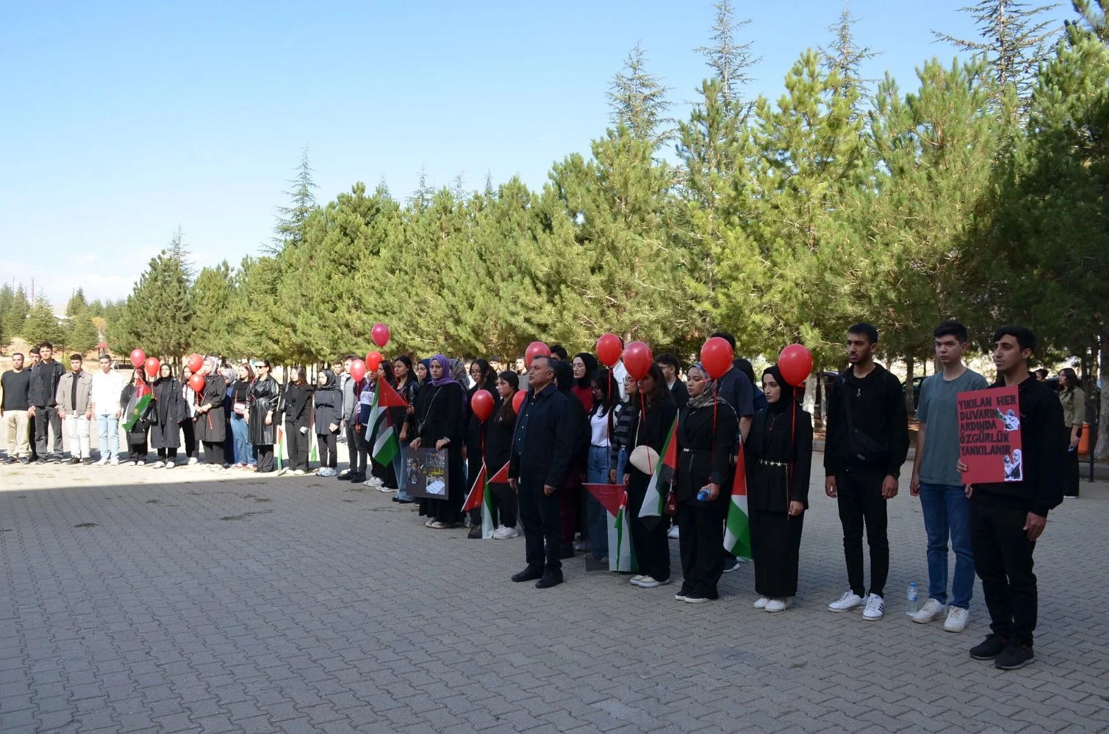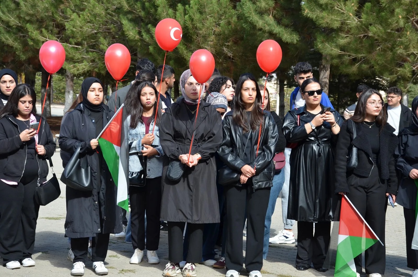 Etkinlikte öğrenciler, mazlum coğrafyalarda yaşanan acılara dikkat çekmek amacıyla sembolik bir tiyatro gösterisi sergiledi. Program, barışı ve umudu simgeleyen balonların gökyüzüne bırakılmasıyla sona erdi.