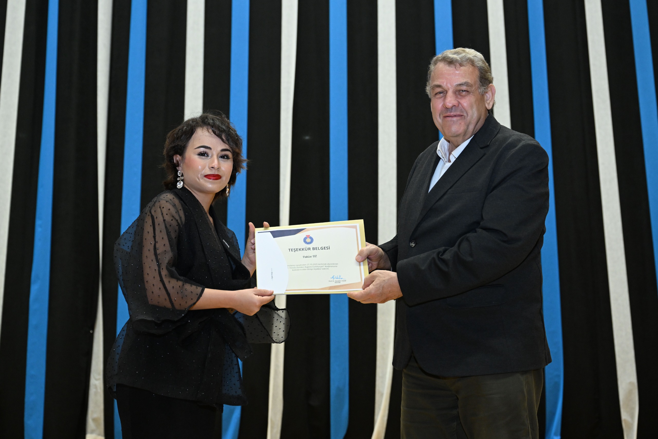 Birbirinden seçkin eserlerin icra edildiği konserin sonunda protokol üyeleri tarafından Dr. Öğr. Üyesi Arzu Mustafayeva, Pakize Uz ve Selman Çetinkaya’ya teşekkür belgeleri takdim edildi. Program, toplu fotoğraf çekimiyle sona erdi.