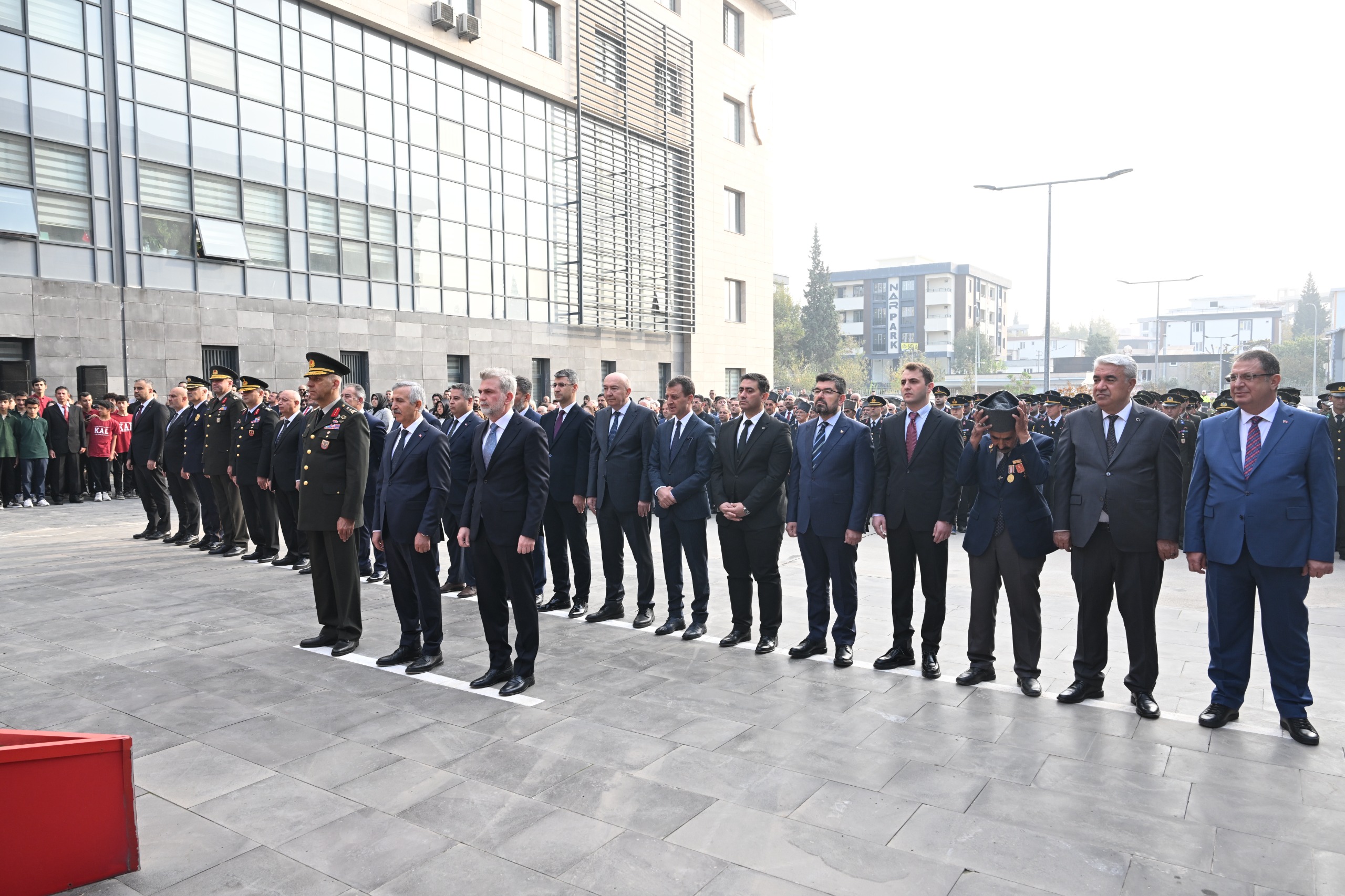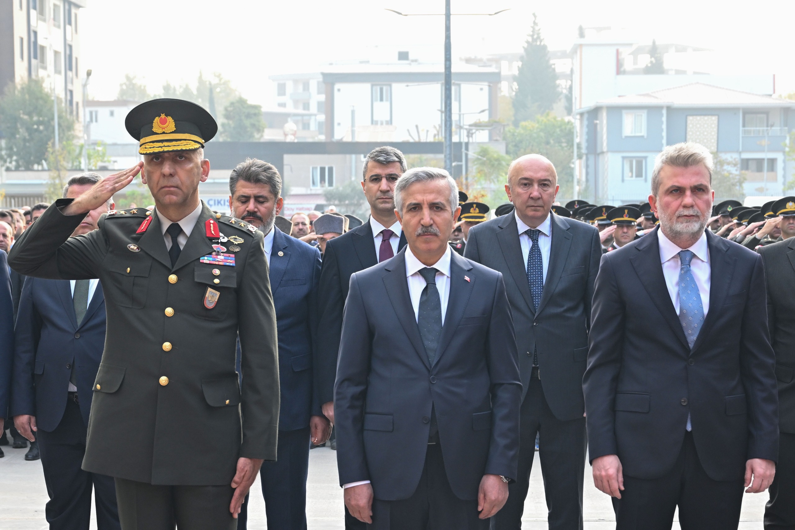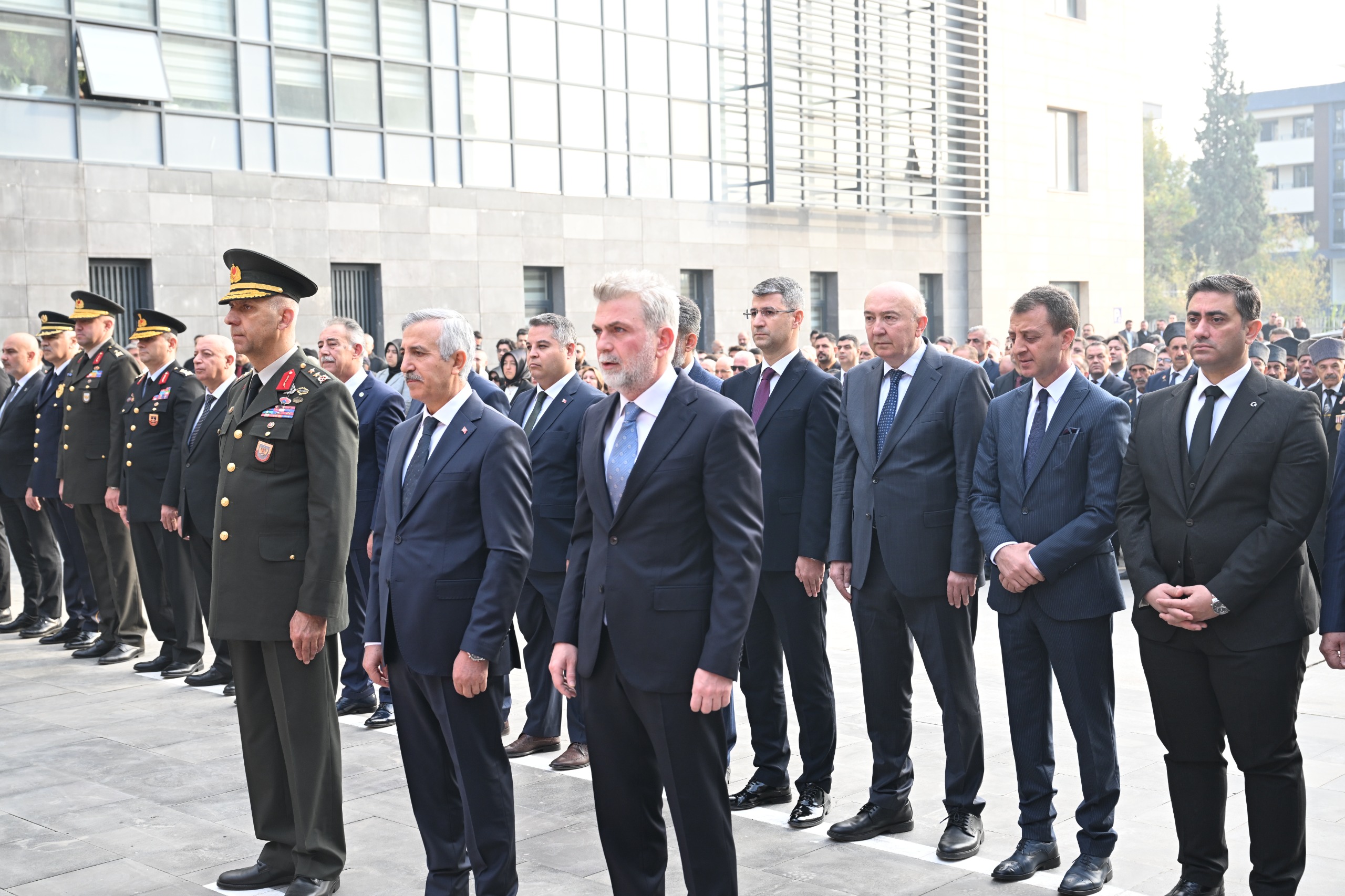 İl Emniyet Müdürlüğü önündeki Atatürk Anıtı’nda gerçekleştirilen törende, protokol üyeleri Atatürk Anıtı’na çelenk sundu. Saat 09.05’i gösterdiğinde ise sirenler eşliğinde tüm şehirde iki dakikalık saygı duruşunda bulunuldu ve ardından İstiklâl Marşı okundu.