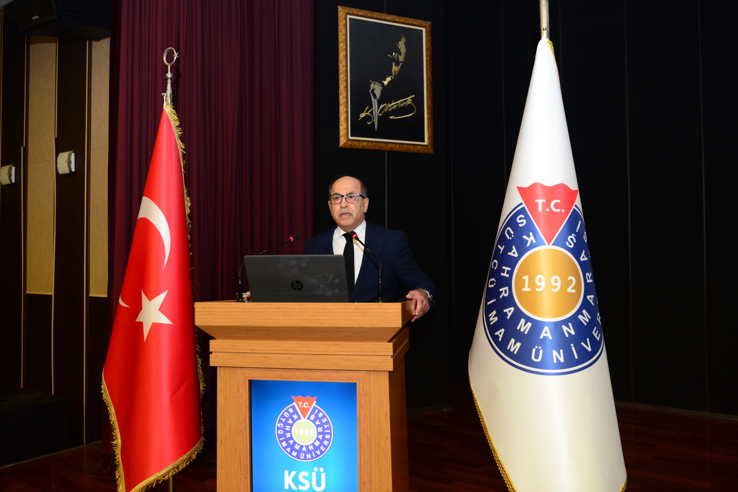 Kahramanmaraş Sütçü İmam Üniversitesi (KSÜ), Cumhuriyetimizin kurucusu Gazi Mustafa Kemal Atatürk’ü vefatının 87. yılında düzenlenen anma töreni ve konferansla andı.