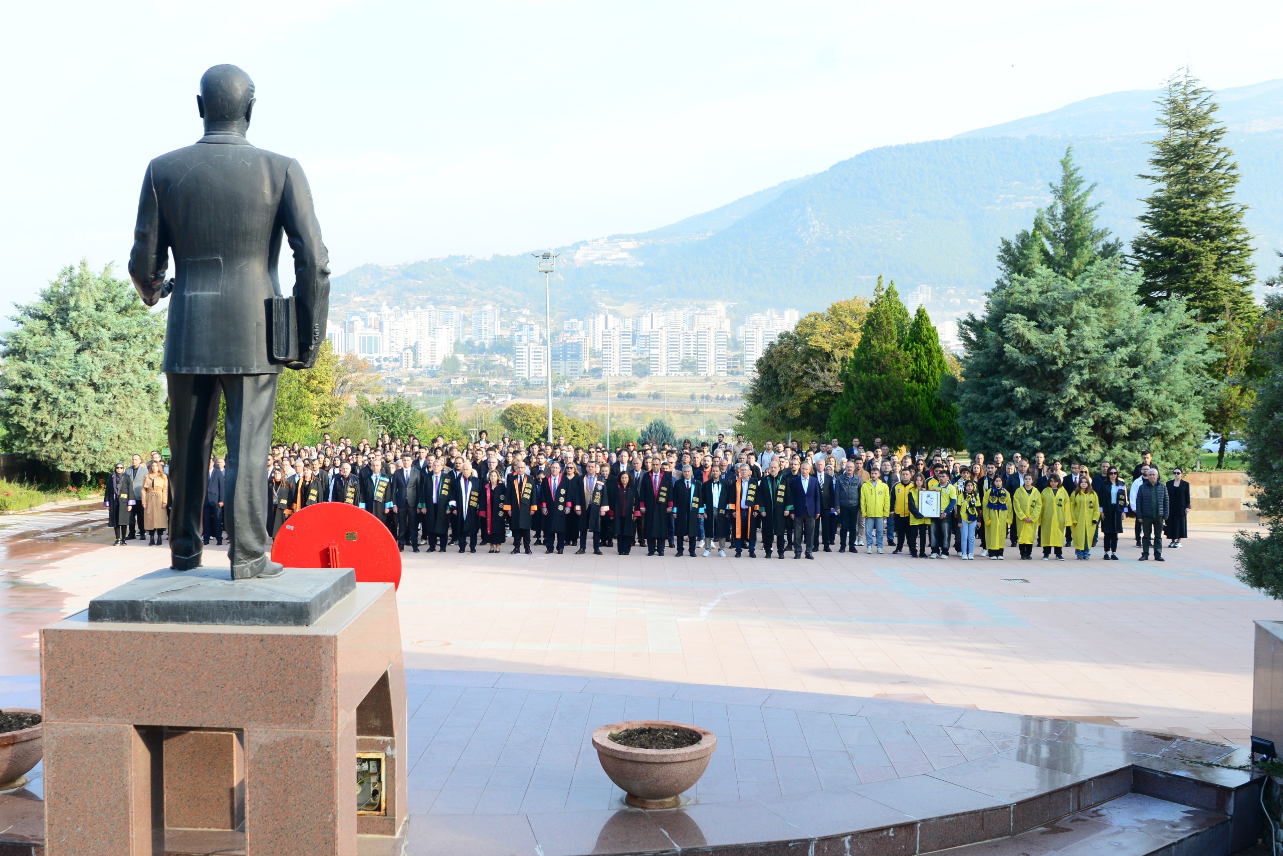 Rektör Yardımcıları Prof. Dr. İrfan Ersin Akıncı, Prof. Dr. Nuri Kahveci, Prof. Dr. Orhan Doğan, Prof. Dr. Hafize Öksüz, Genel Sekreter İbrahim Palabıyık, senato üyeleri, akademik ve idari personel ile öğrencilerin katıldığı törenin ardından “Kurtuluştan Kurtuluşa Atatürk ve Devlet Aklı” konulu konferans için Cahit Zarifoğlu Konferans Salonuna geçildi.