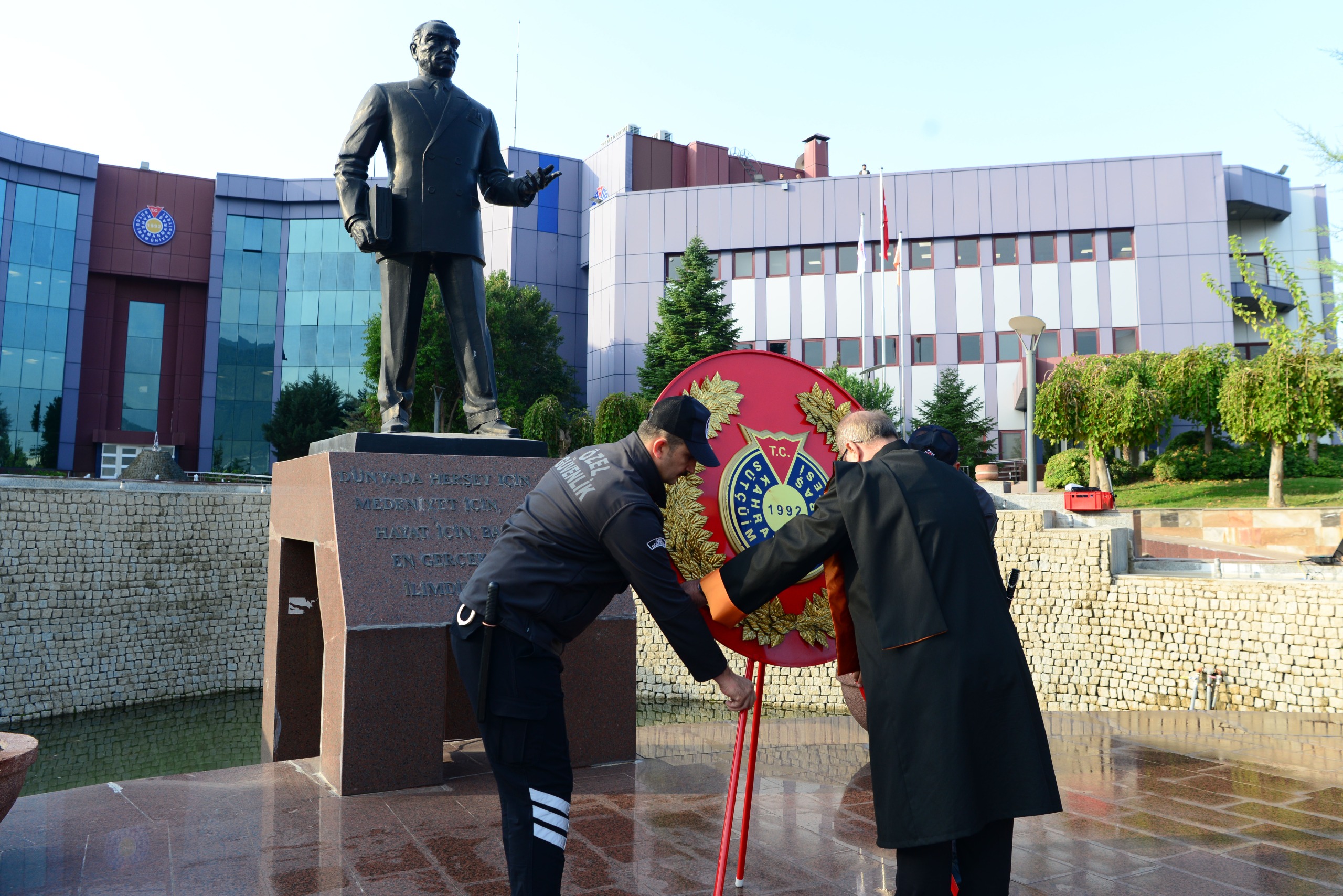 Atatürk’ü Anma Töreni, KSÜ Avşar Yerleşkesi Atatürk Anıtı önünde gerçekleştirildi. Tören, Rektör Yardımcısı Prof. Dr. Orhan Doğan’ın Atatürk Anıtı’na çelenk sunumunun ardından, matem sireni eşliğinde yapılan saygı duruşu ve İstiklâl Marşı’nın okunmasıyla tamamlandı.
