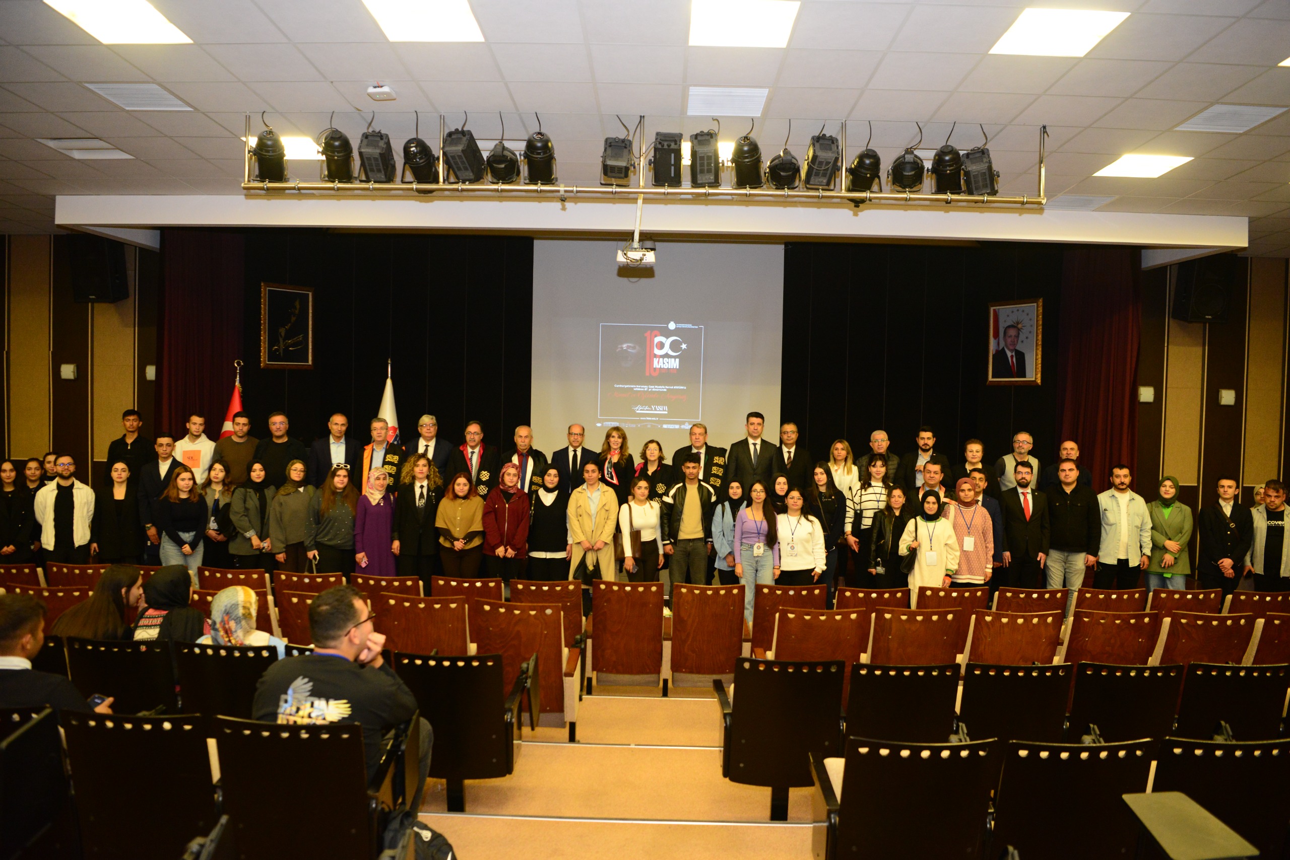 “10 Kasım Atatürk’ü Anma Günü” programı, Rektör Yardımcısı Prof. Dr. Orhan Doğan’ın Doç. Dr. Tülay Aydın’a teşekkür belgesi takdim etmesinin ardından toplu fotoğraf çekimiyle sona erdi.