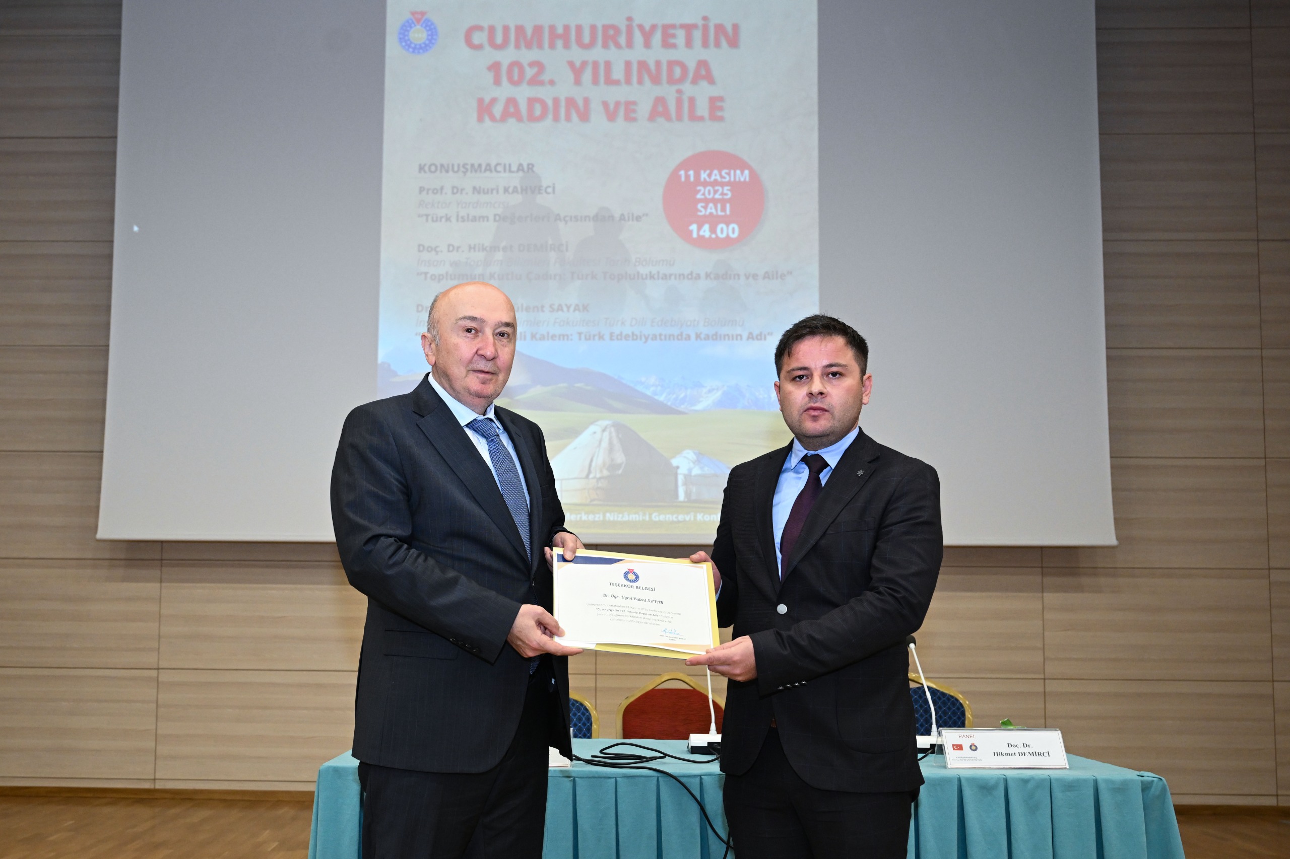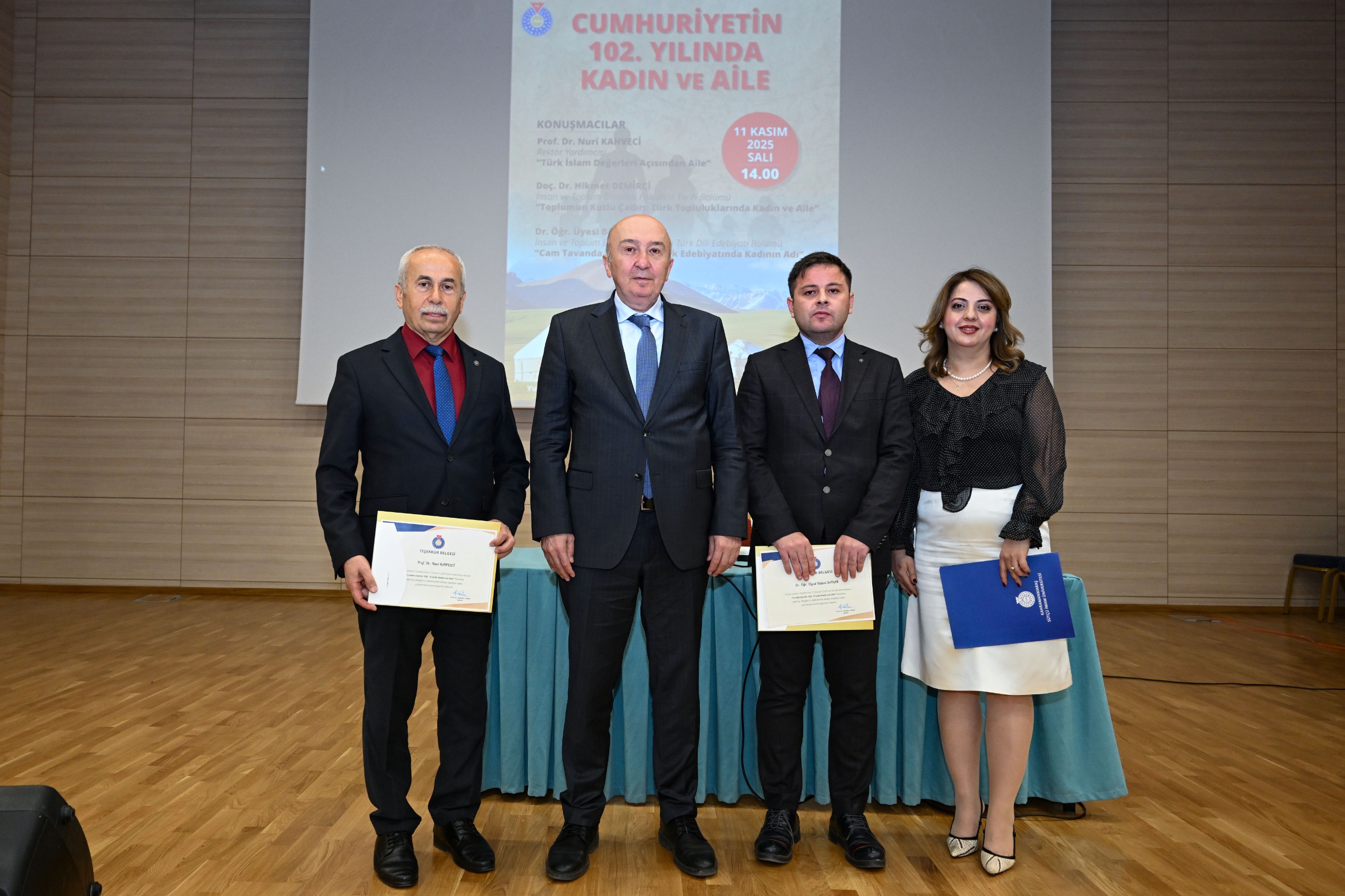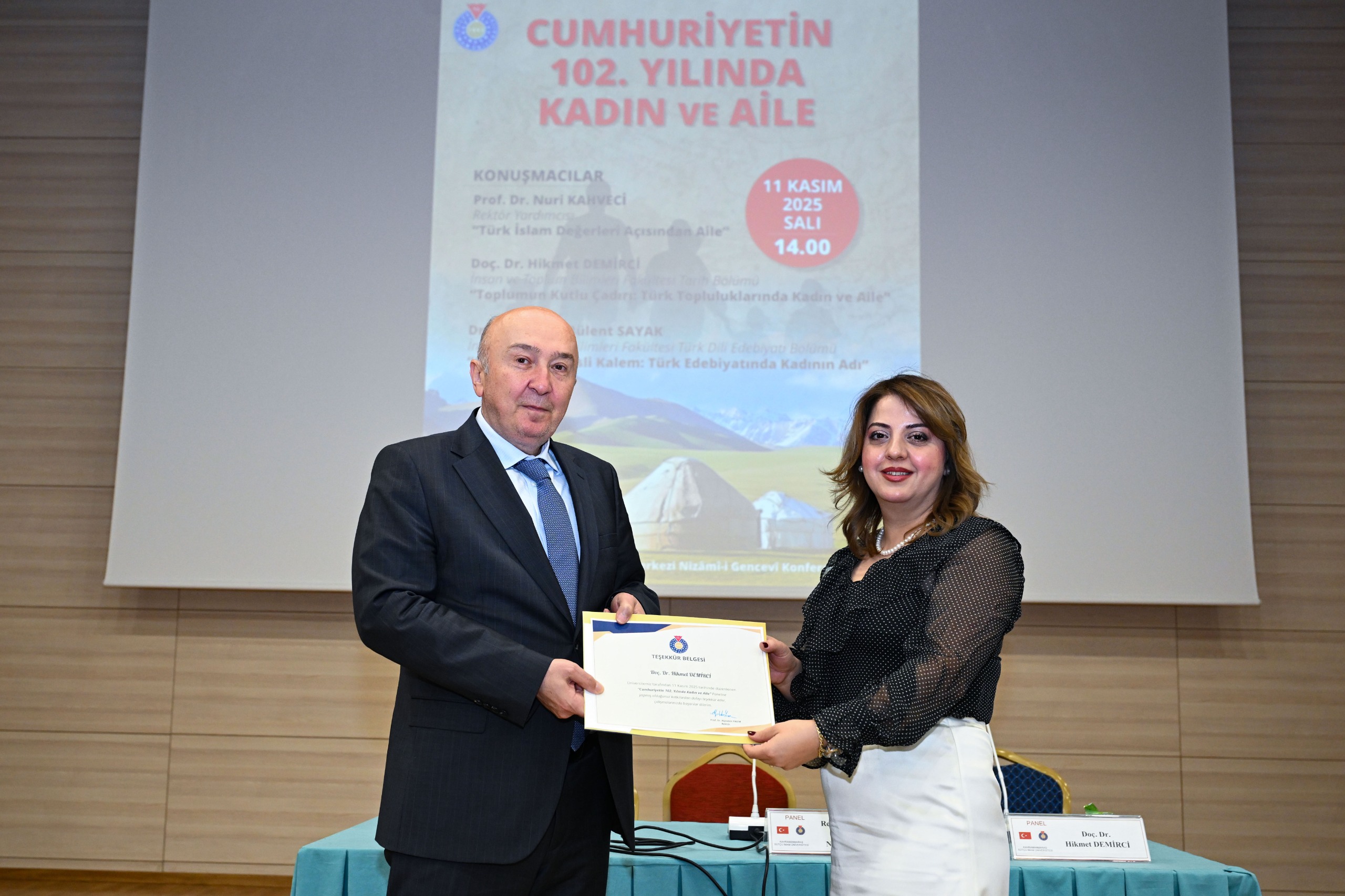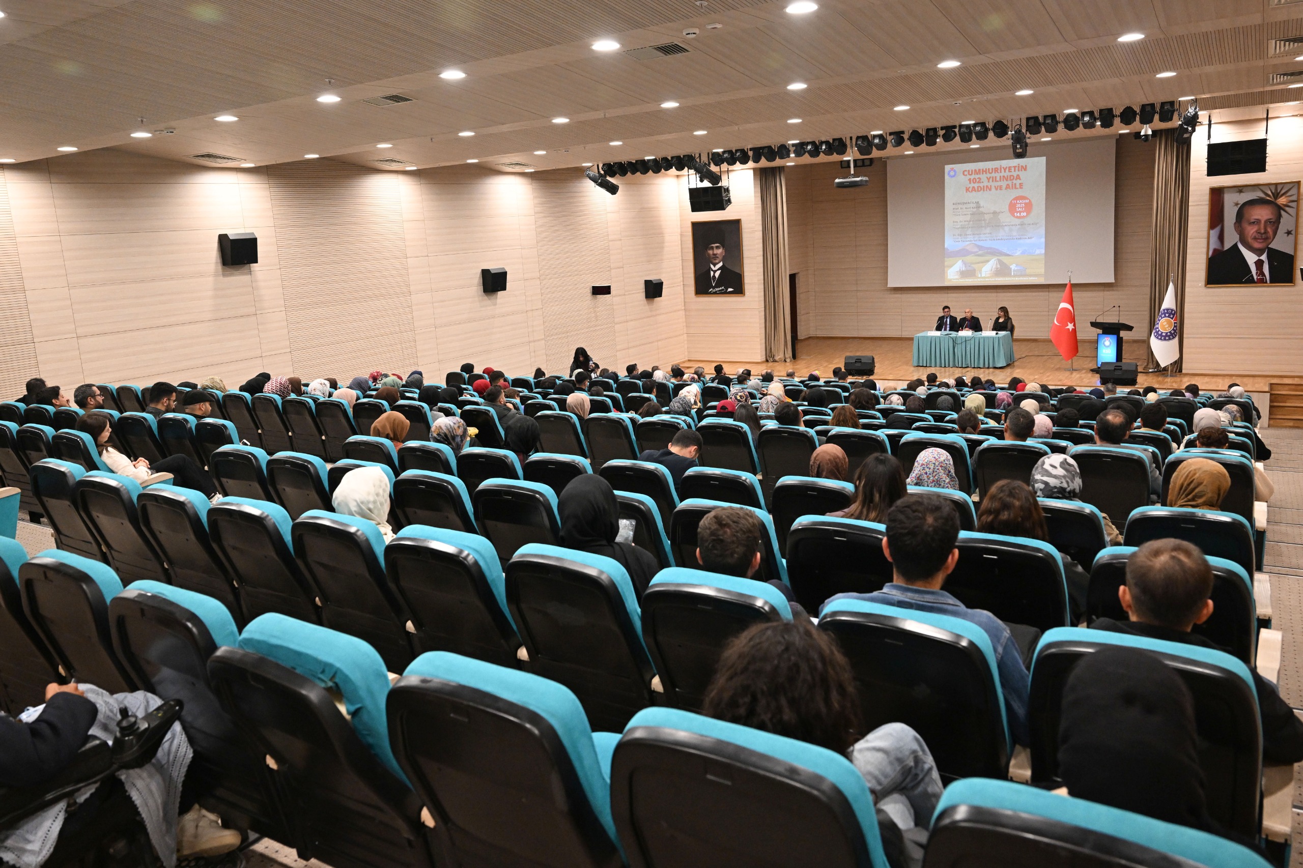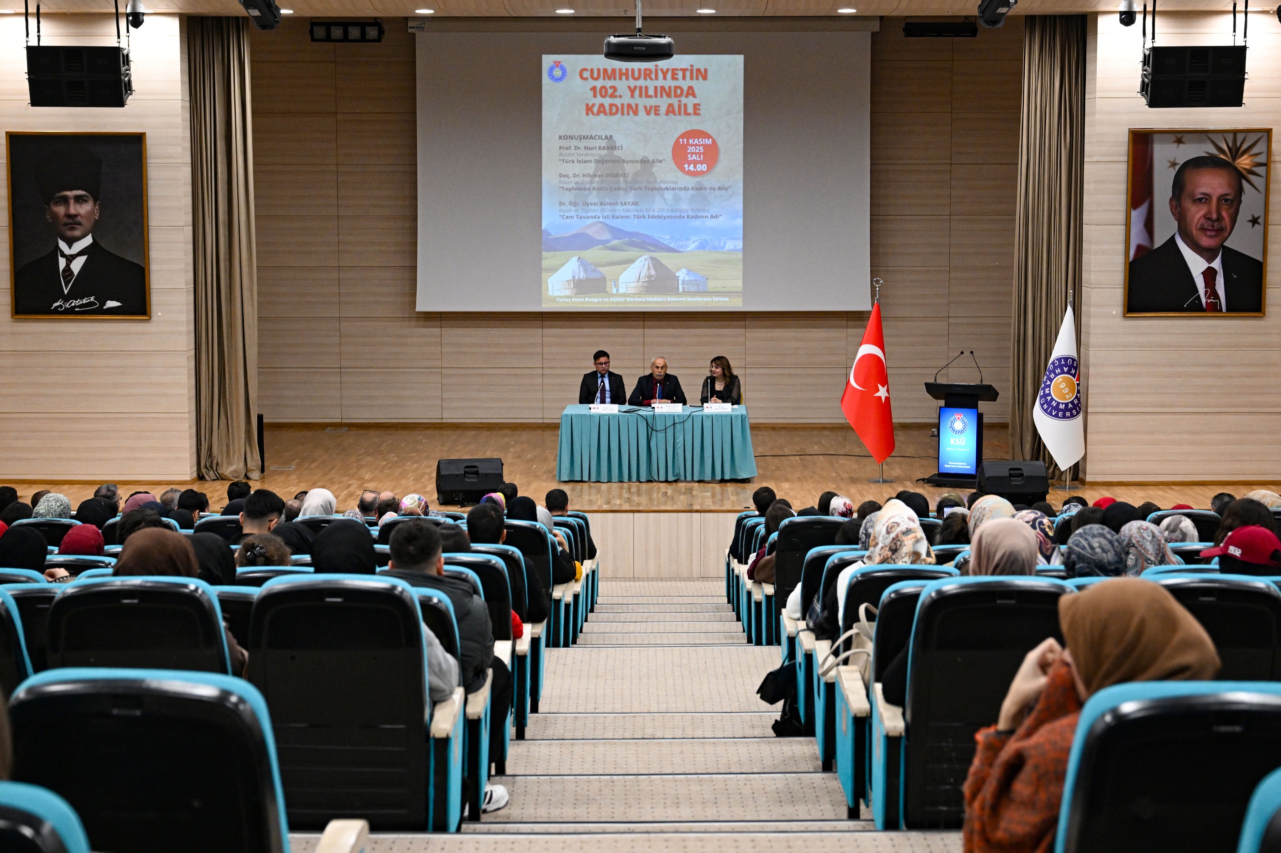 “Cumhuriyetin 102. Yılında Kadın ve Aile” konulu panel, Yunus Emre Kongre ve Kültür Merkezi Nizâmî-i Gencevî Konferans Salonunda düzenlendi.