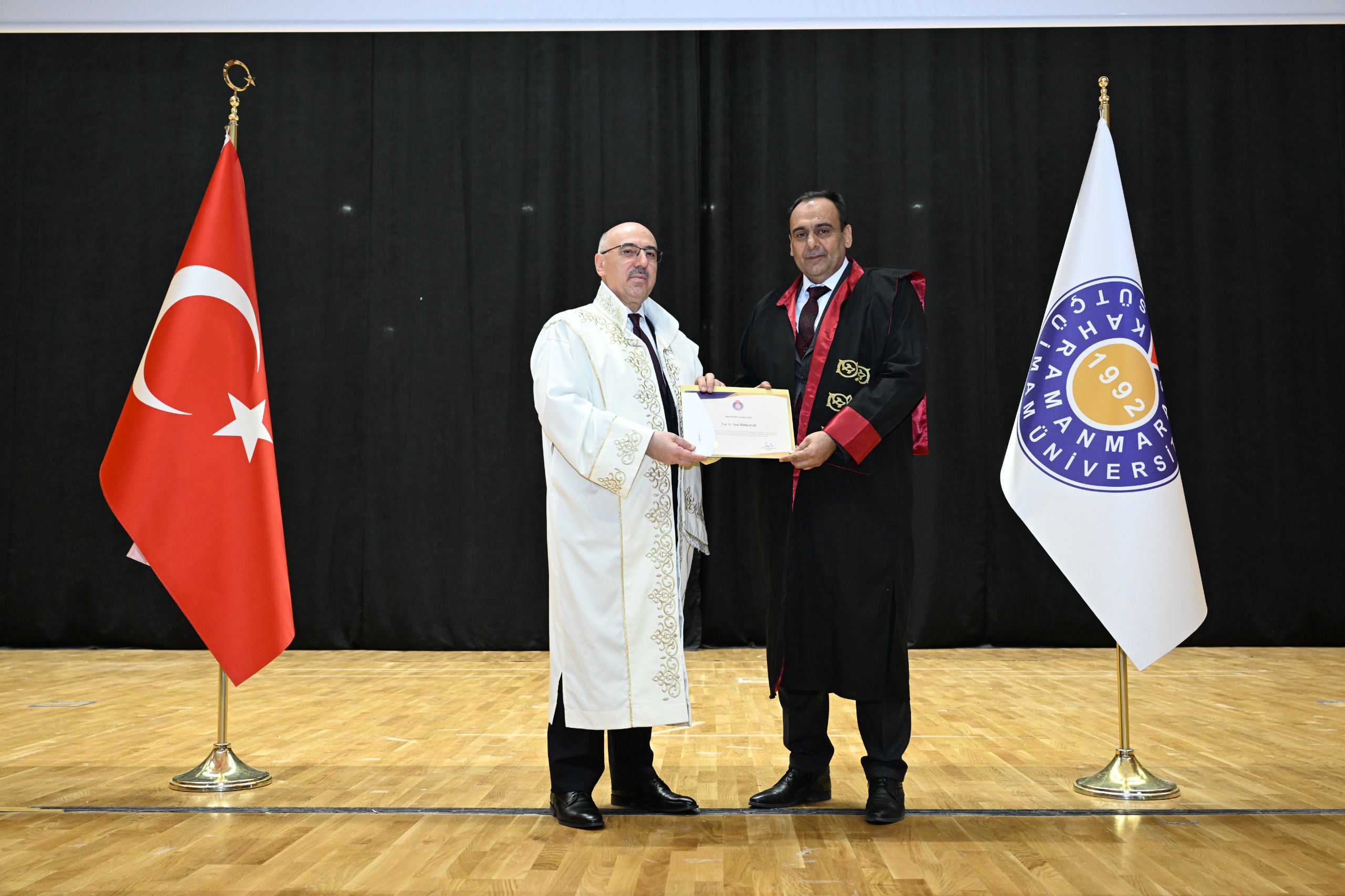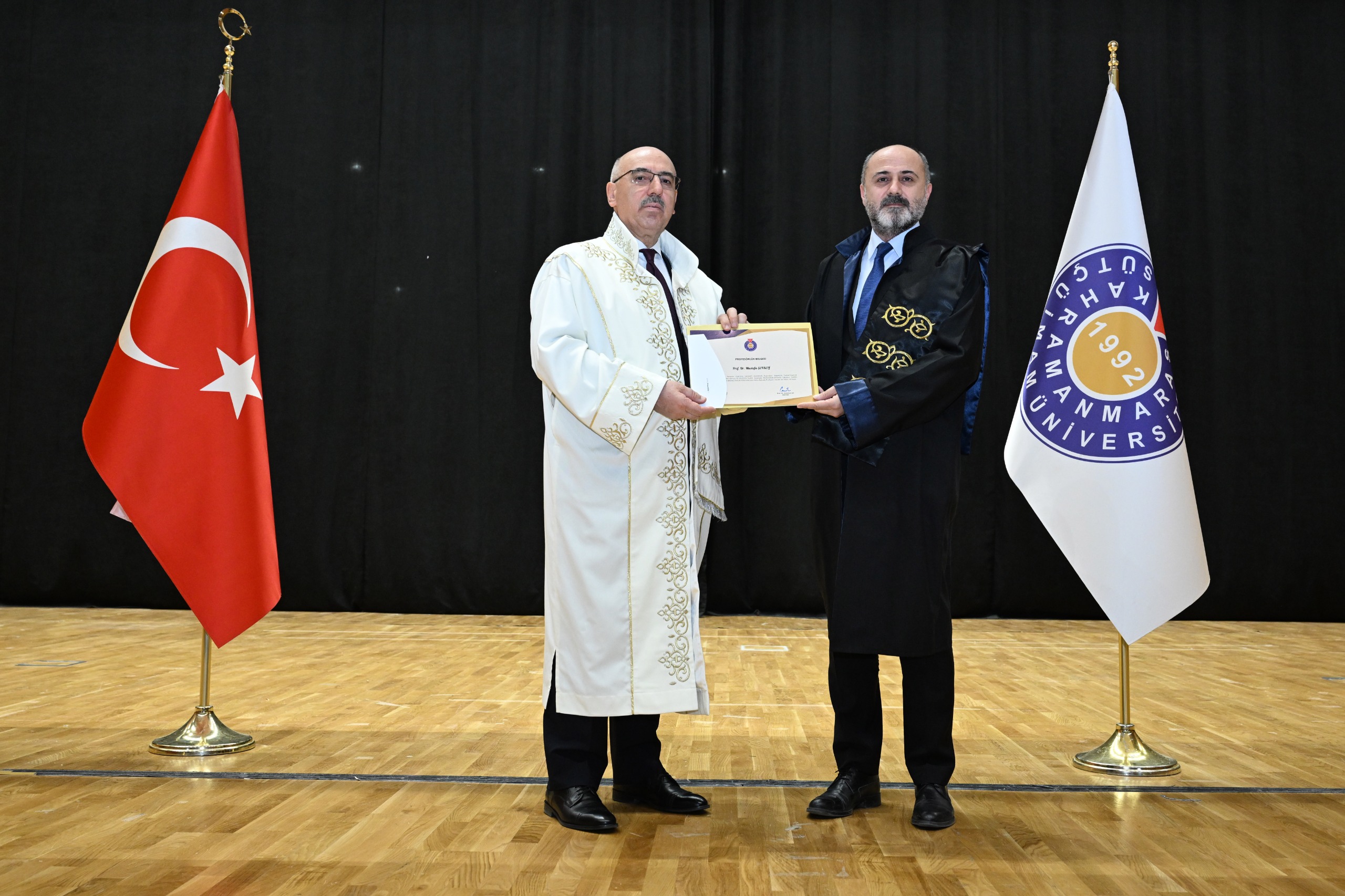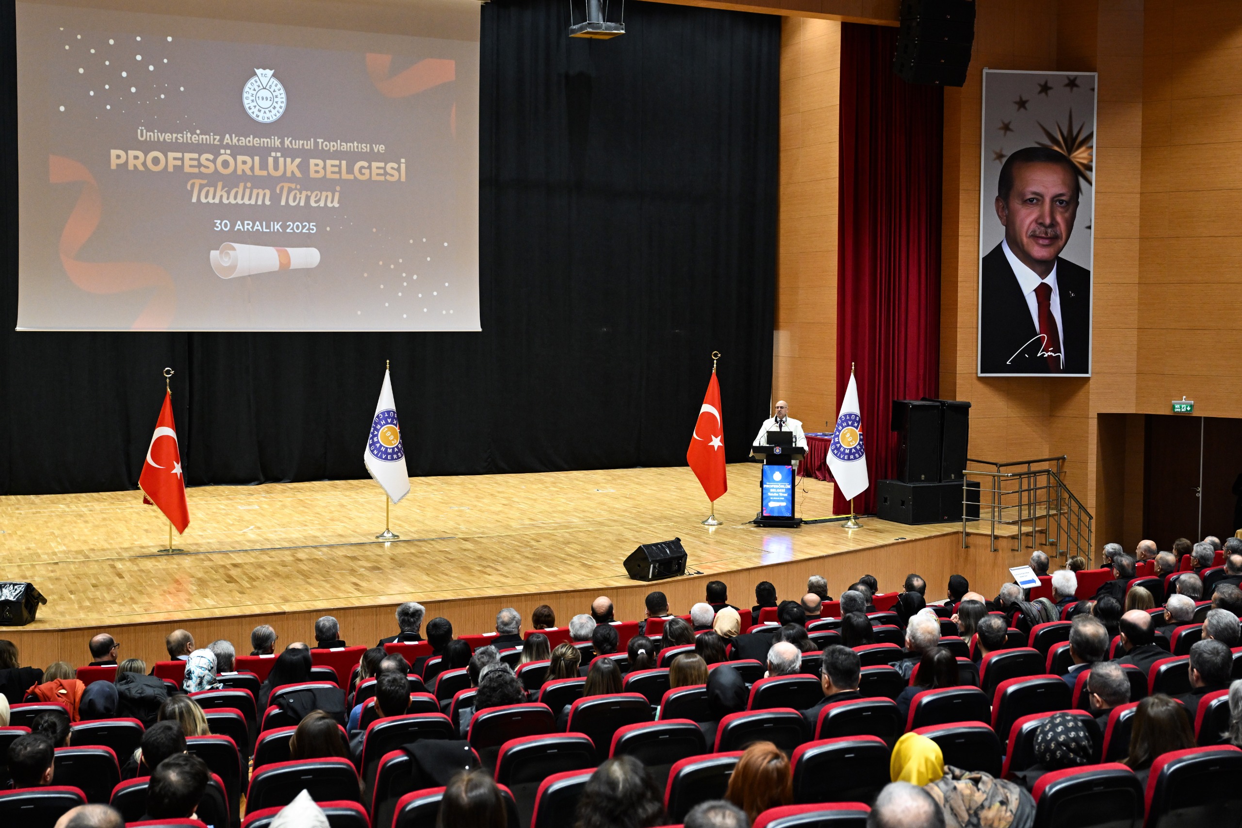 Kahramanmaraş Sütçü İmam Üniversitesi (KSÜ) Akademik Kurul Toplantısı ile profesör kadrosuna atanan ve ilk kez profesörlük belgesi almaya hak kazanan öğretim üyeleri için sertifika takdim töreni, Yunus Emre Kongre ve Kültür Merkezi Sezai Karakoç Konferans Salonunda gerçekleştirildi.