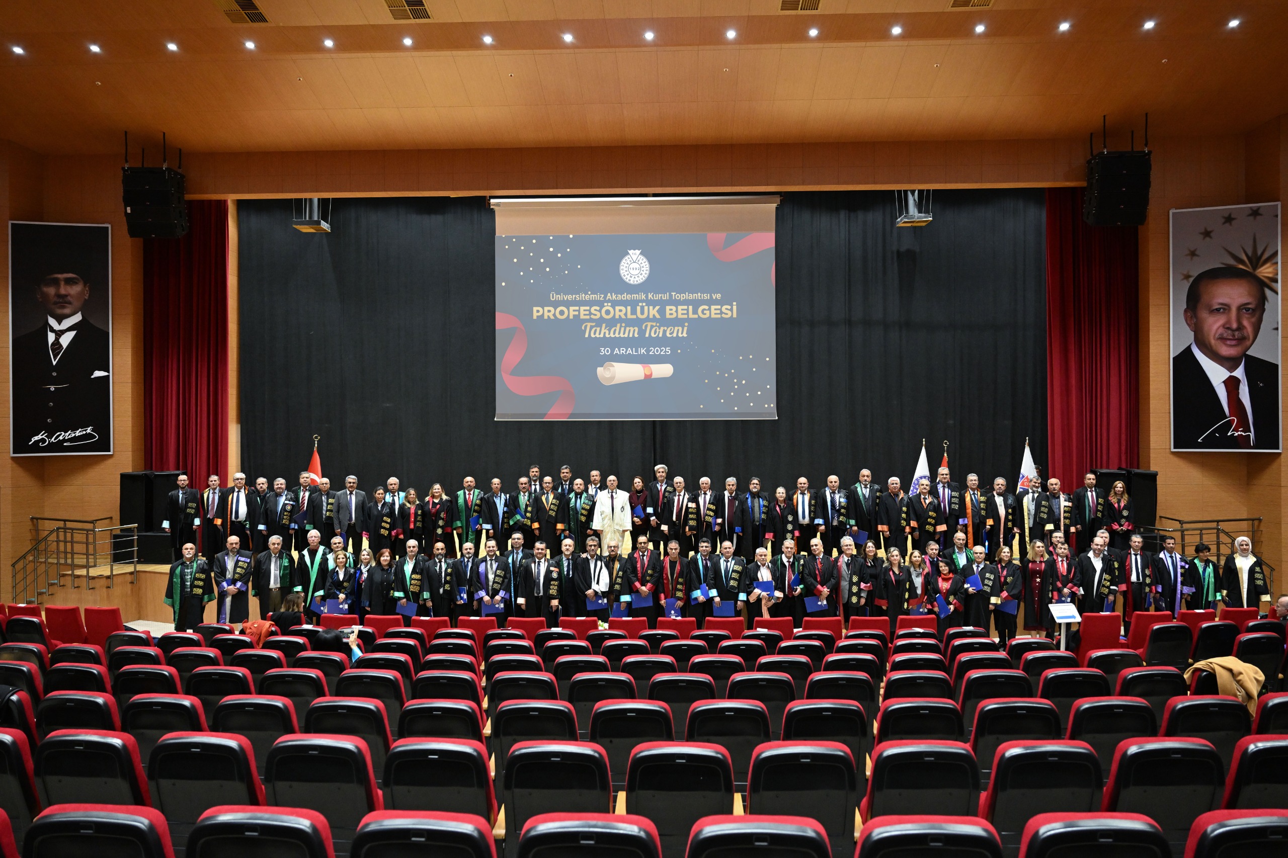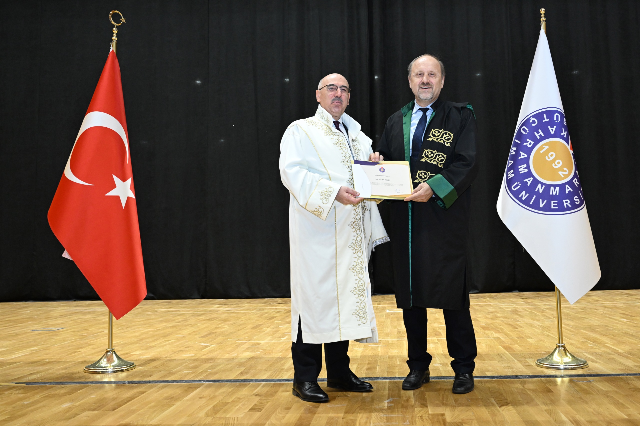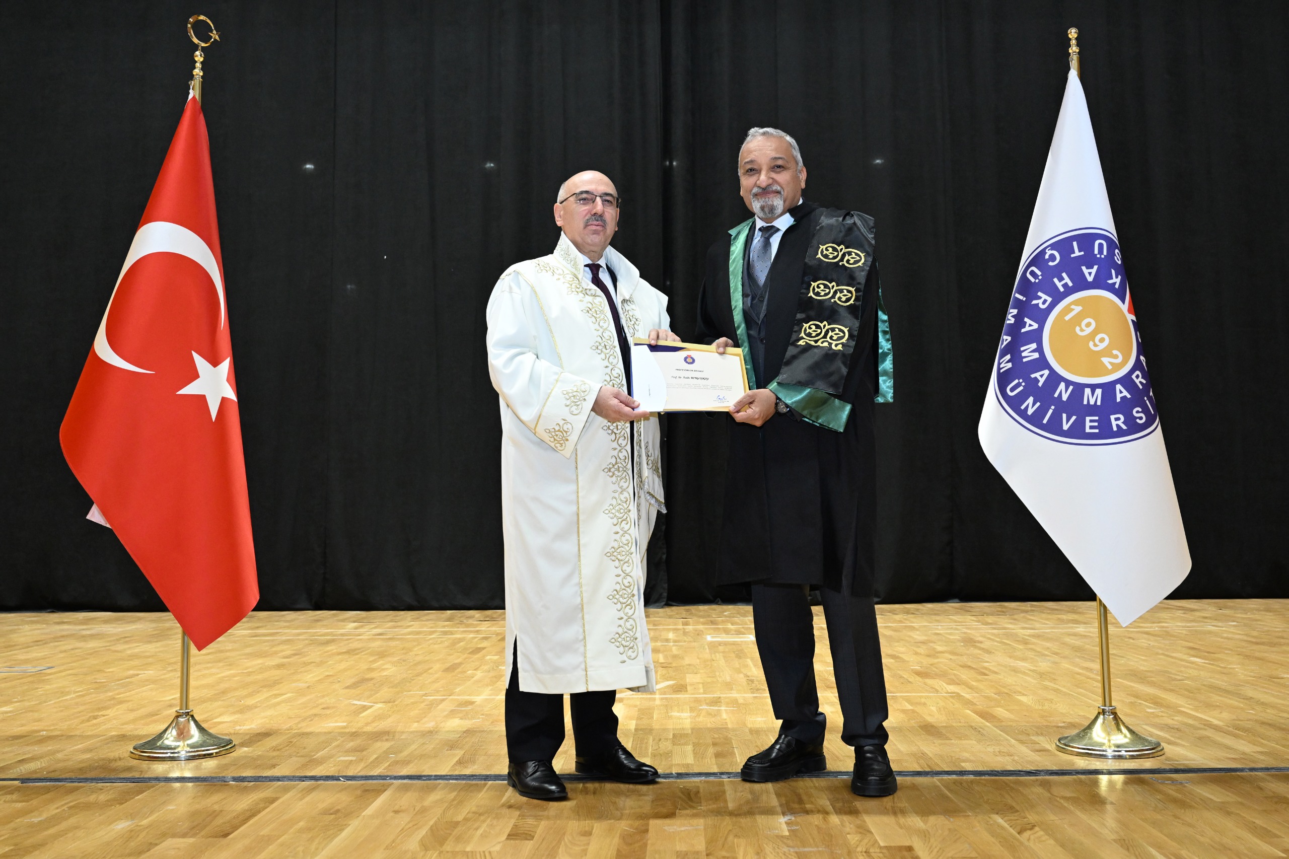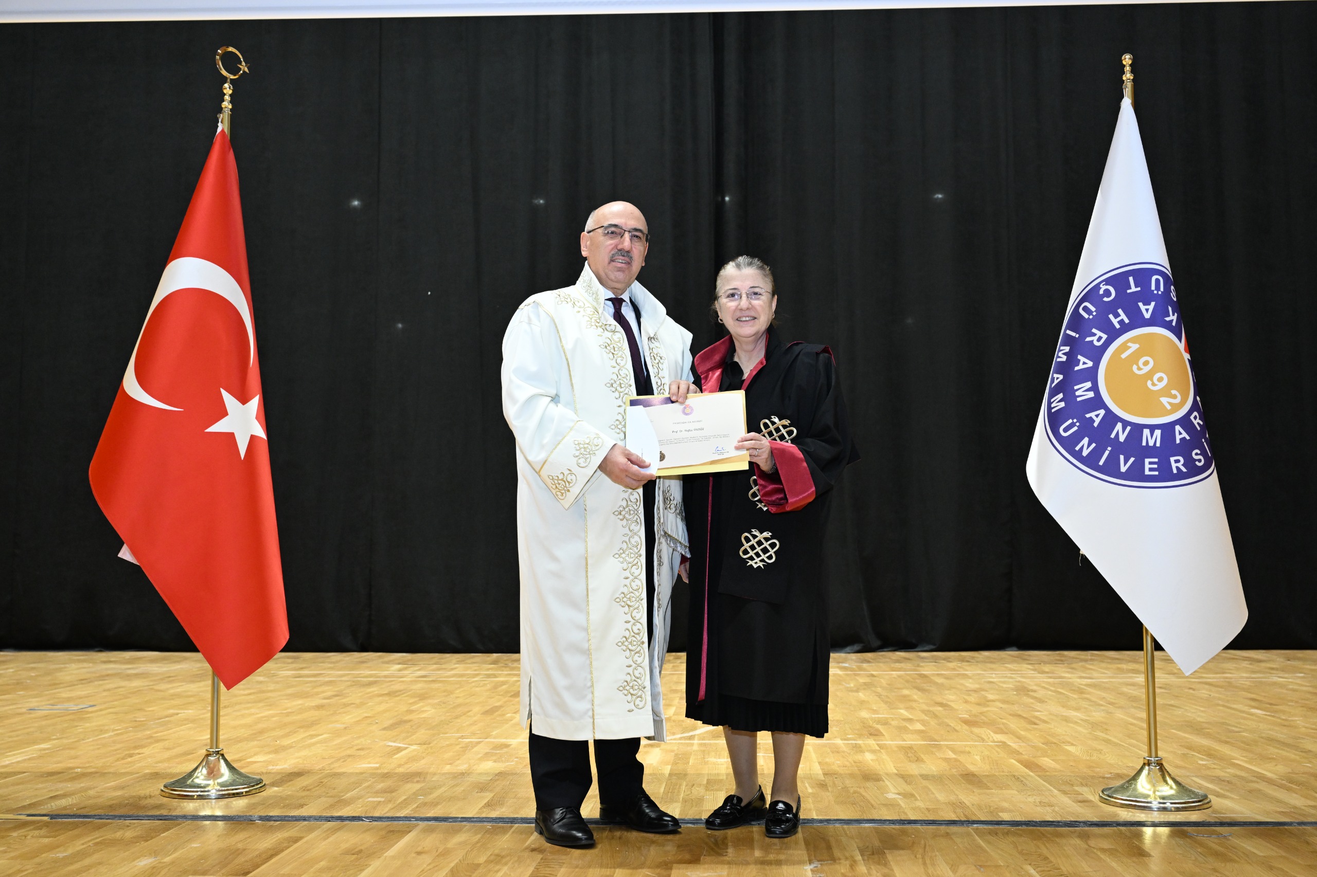 Kahramanmaraş Sütçü İmam Üniversitesi (KSÜ) Akademik Kurul Toplantısı ile profesör kadrosuna atanan ve ilk kez profesörlük belgesi almaya hak kazanan öğretim üyeleri için sertifika takdim töreni, Yunus Emre Kongre ve Kültür Merkezi Sezai Karakoç Konferans Salonunda gerçekleştirildi.