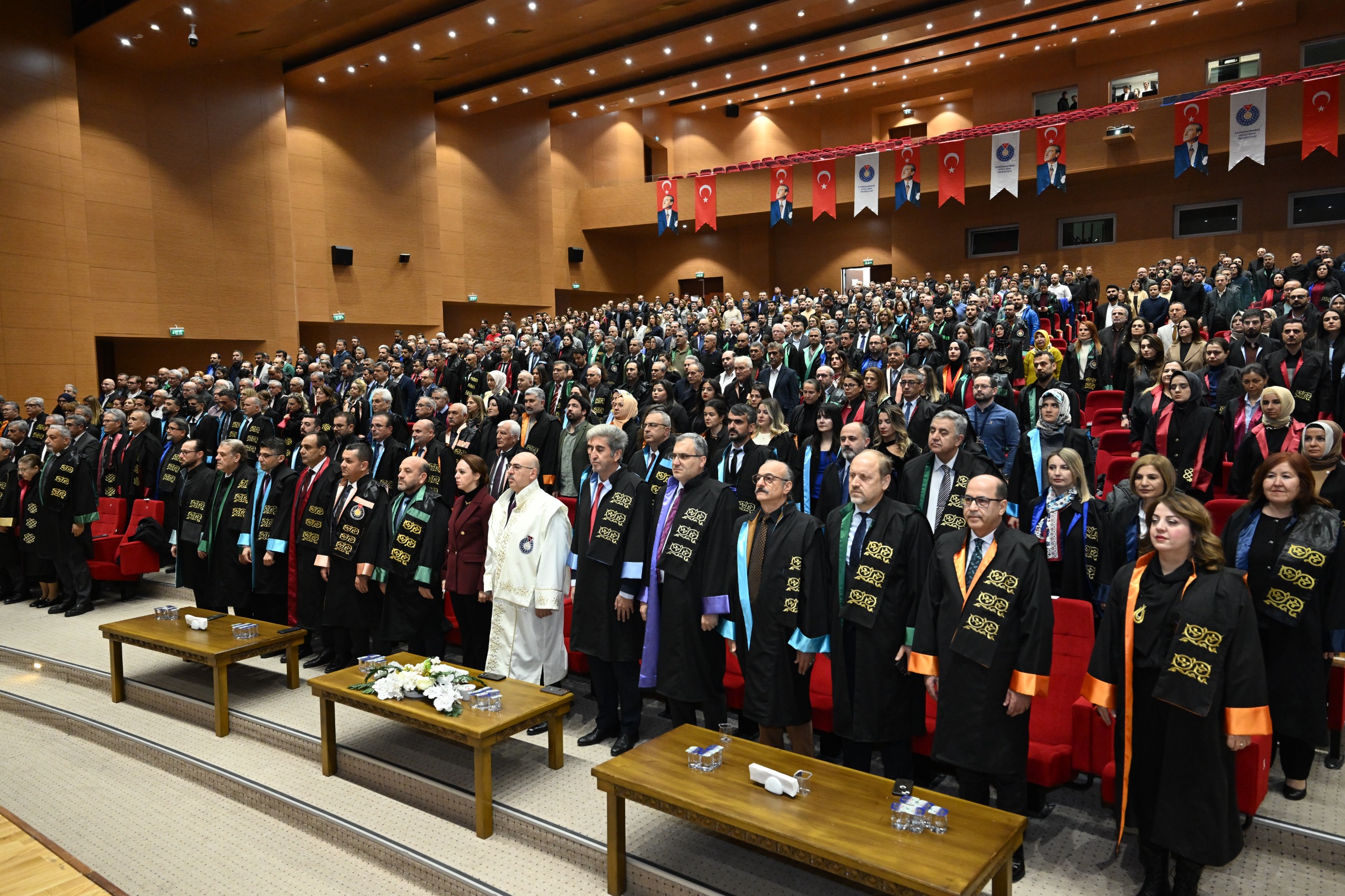 KSÜ Rektörü Prof. Dr. Mahmut Ak ve birim yöneticilerinin katılımıyla düzenlenen törene, İstiklal Üniversitesi Rektör Vekili Prof. Dr. Burcu Erşahan, KSÜ Rektör Yardımcıları Prof. Dr. Salih Yeşil ve Prof. Dr. Ramazan Çetintaş, fakülte dekanları, yüksekokul müdürleri ve akademisyenler katıldı. Program, saygı duruşu ve İstiklal Marşının okunmasıyla başladı.