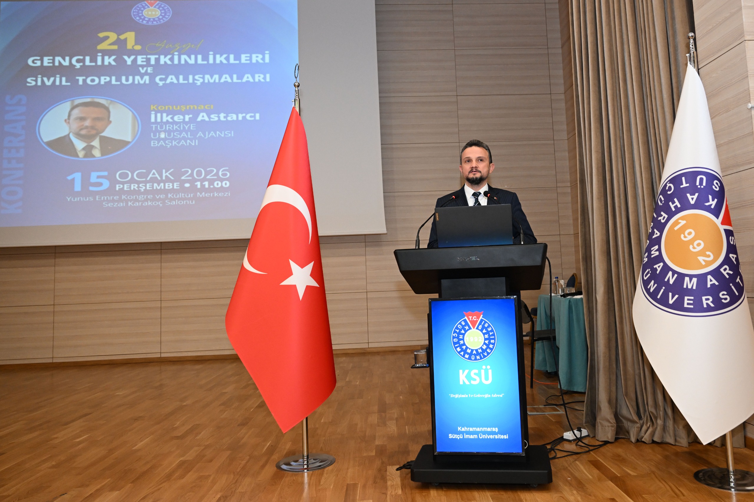 Türkiye Ulusal Ajansı Başkanı İlker Astarcı’nın konuşmacı olduğu “21. Yüzyıl Gençlik Yetkinlikleri ve Sivil Toplum Çalışmaları” konulu konferans, Kahramanmaraş Sütçü İmam Üniversitesinde (KSÜ) gerçekleştirildi.