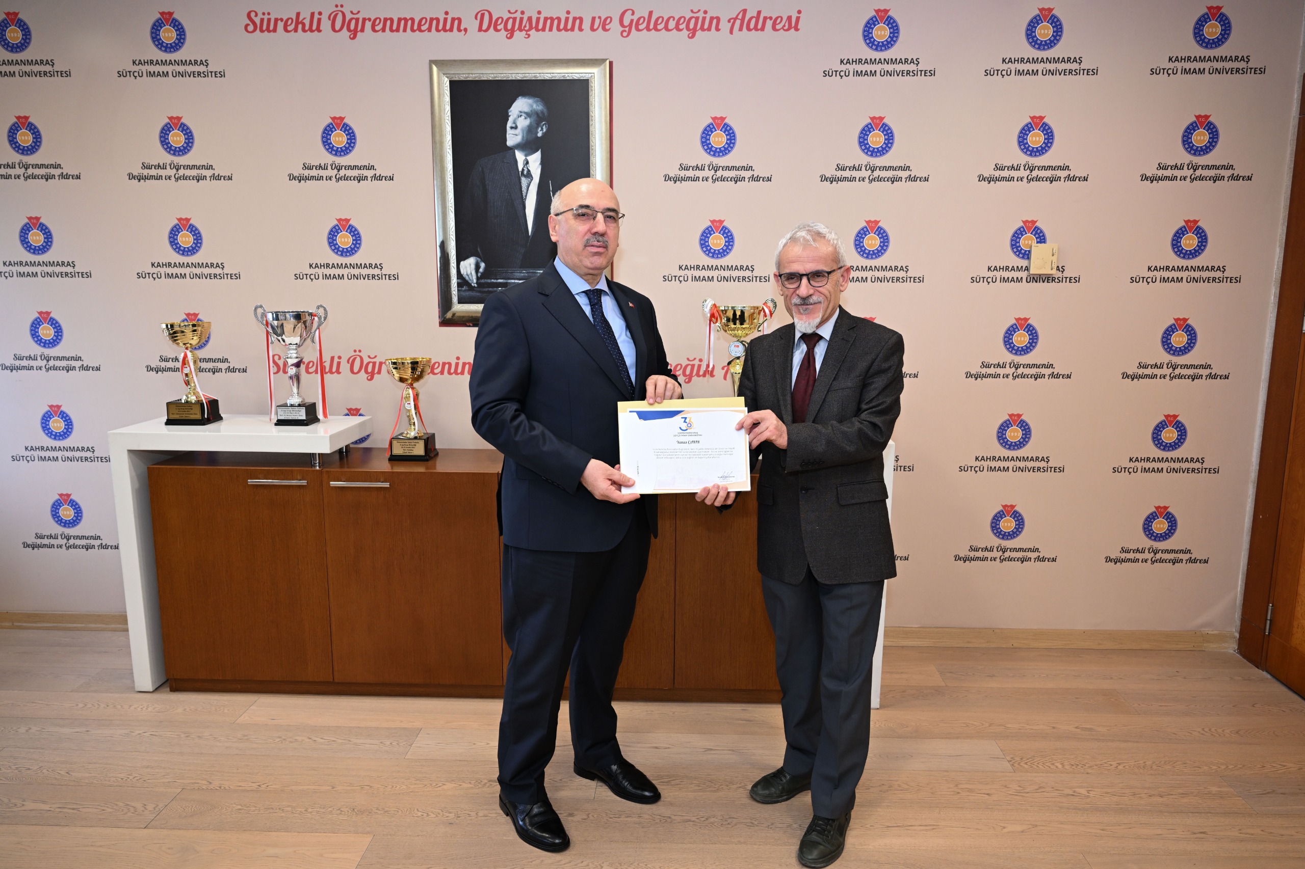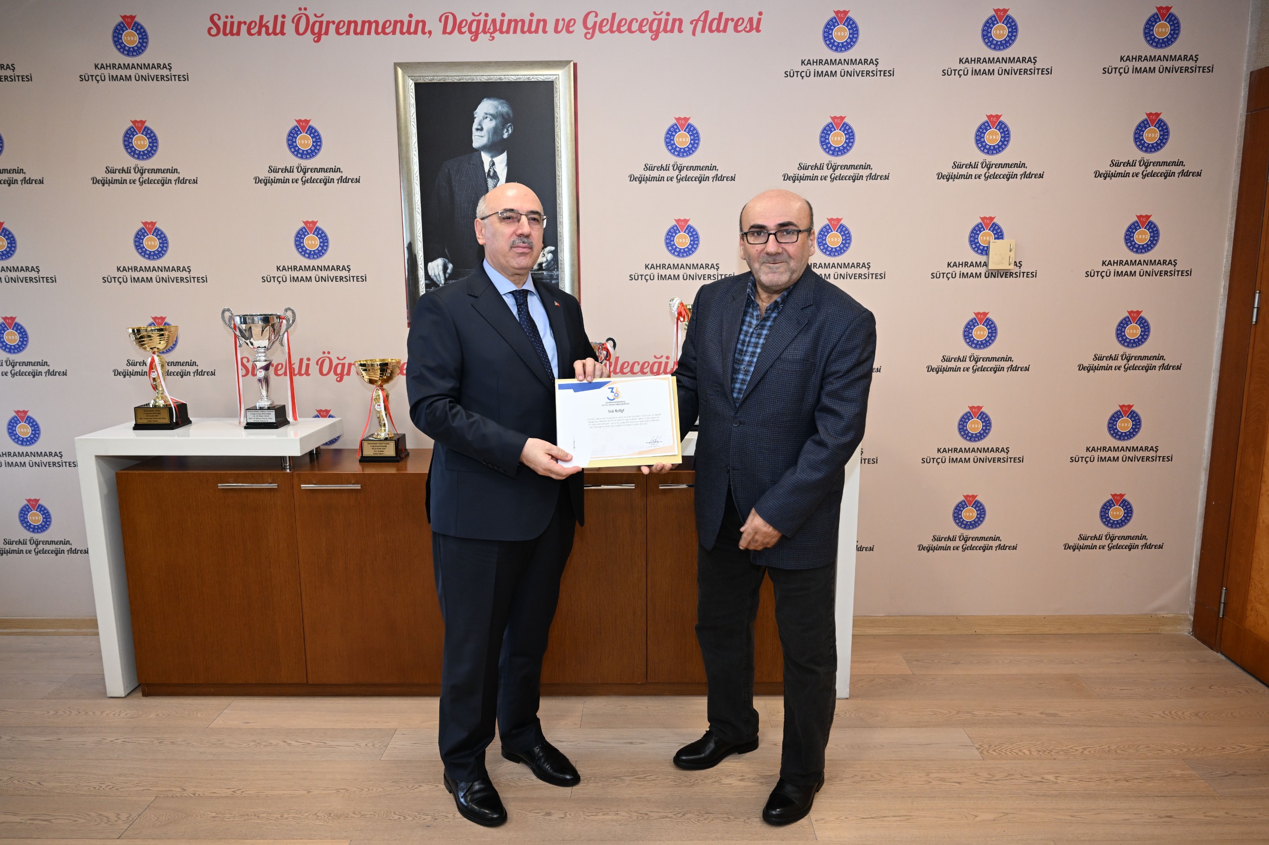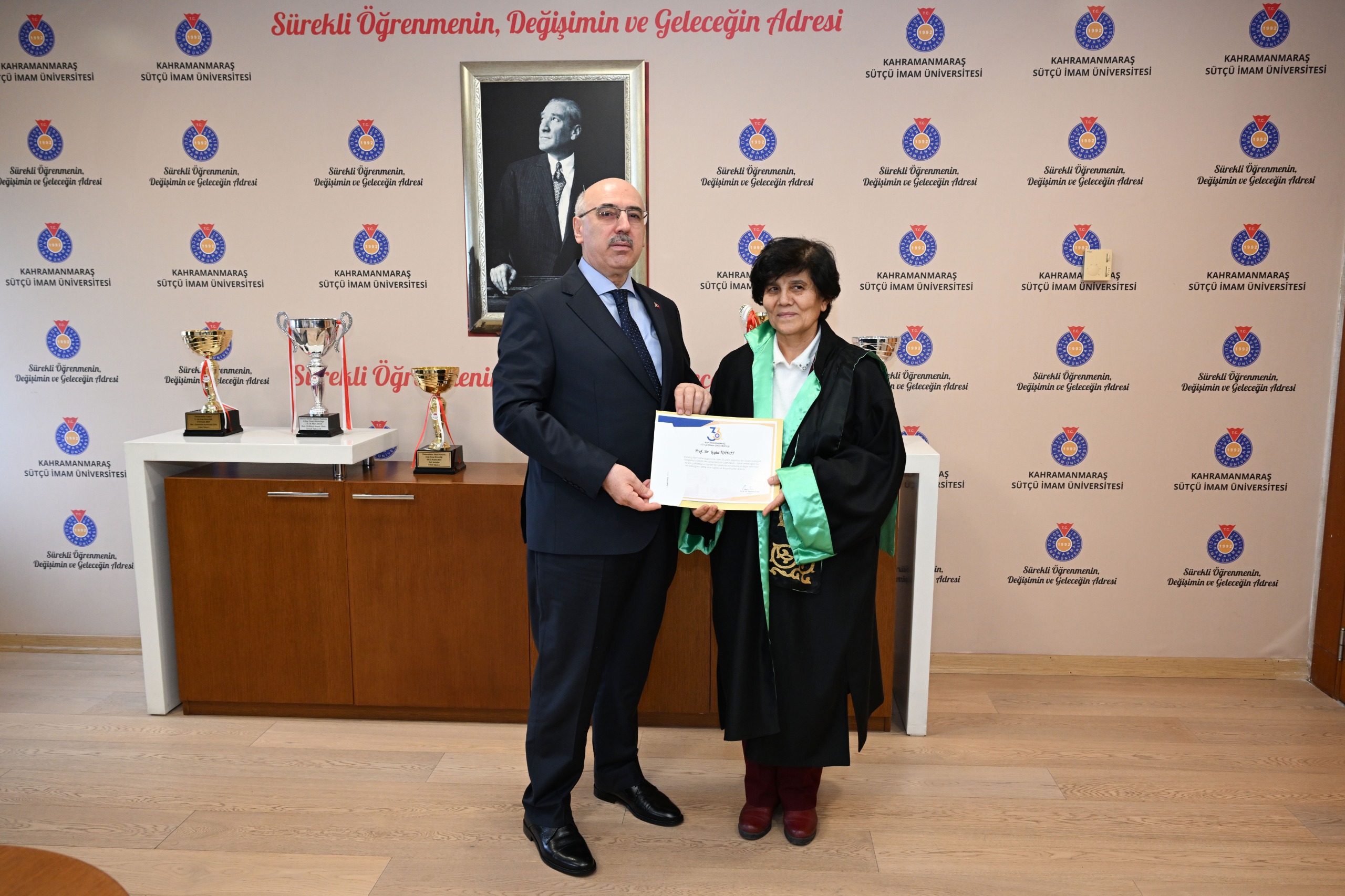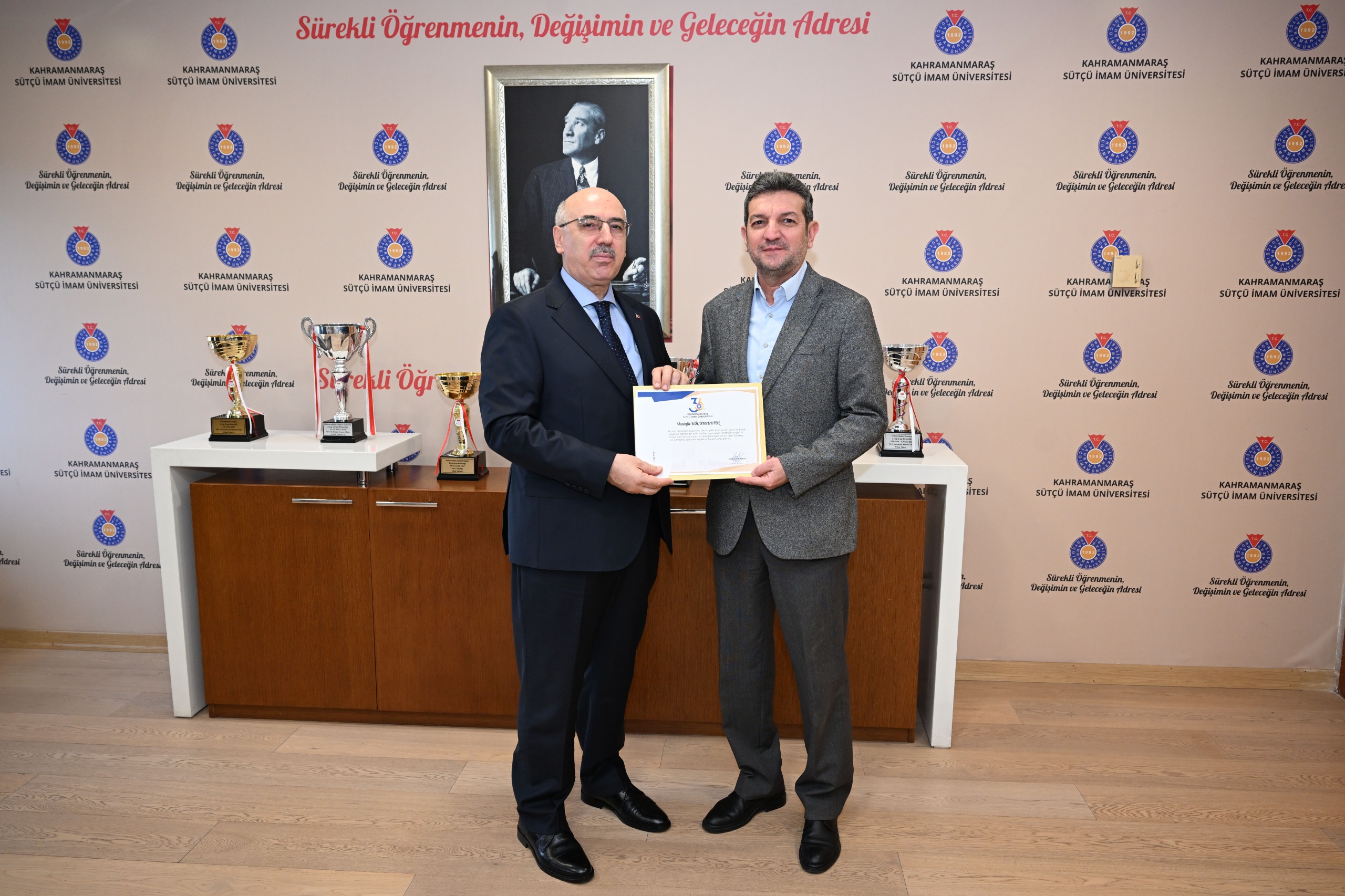 Kahramanmaraş Sütçü İmam Üniversitesi’nin 33. kuruluş yılı kapsamında, üniversitede 33 yılını dolduran akademik ve idari personele yönelik teşekkür belgesi takdim töreni düzenlendi. Senato toplantısı çerçevesinde Rektörlük Makamı Senato Salonu’nda gerçekleştirilen programda, uzun yıllar boyunca üniversiteye hizmet eden personele emek ve katkılarından dolayı teşekkür belgeleri verildi.