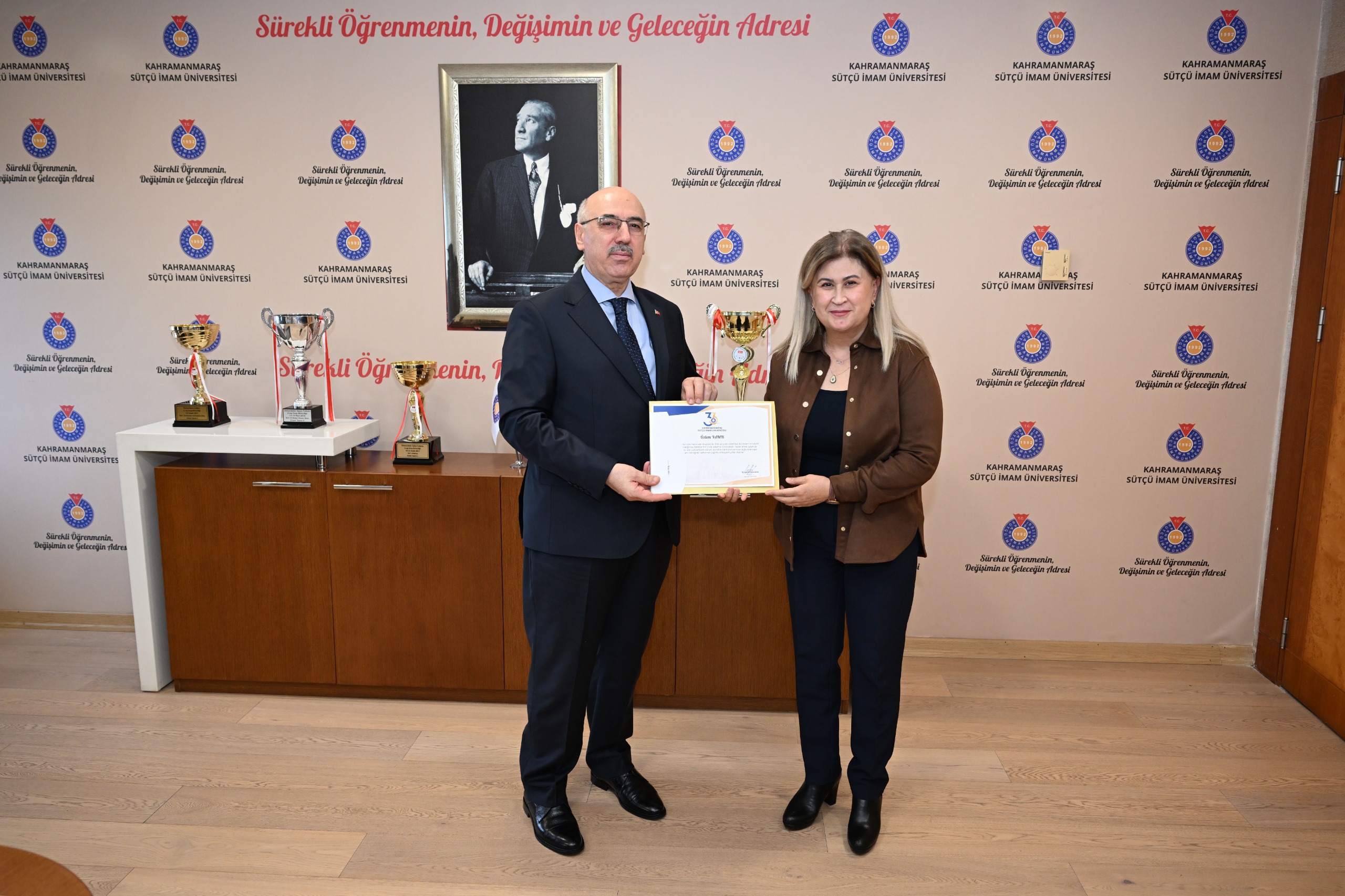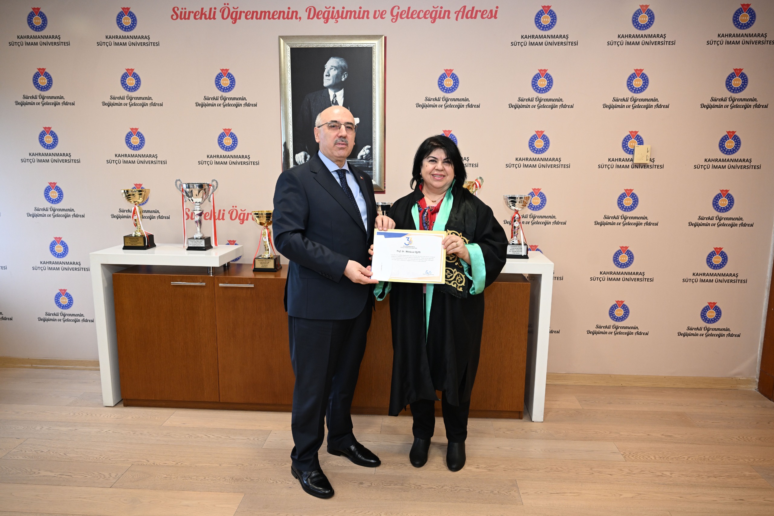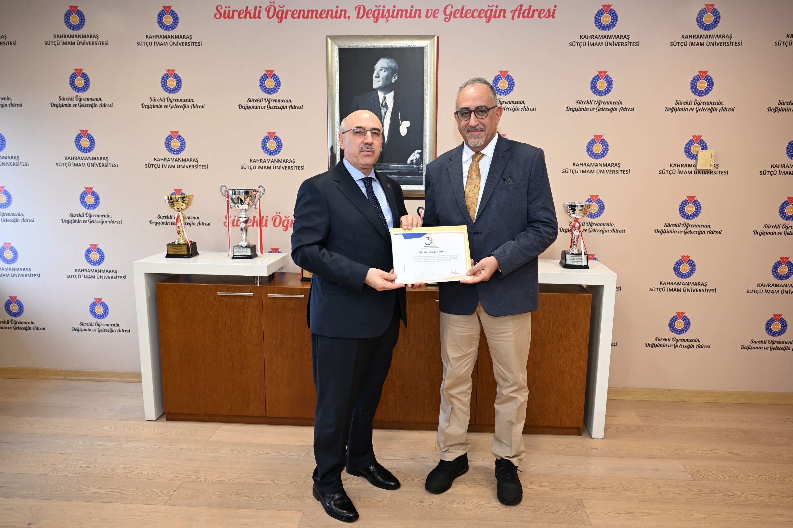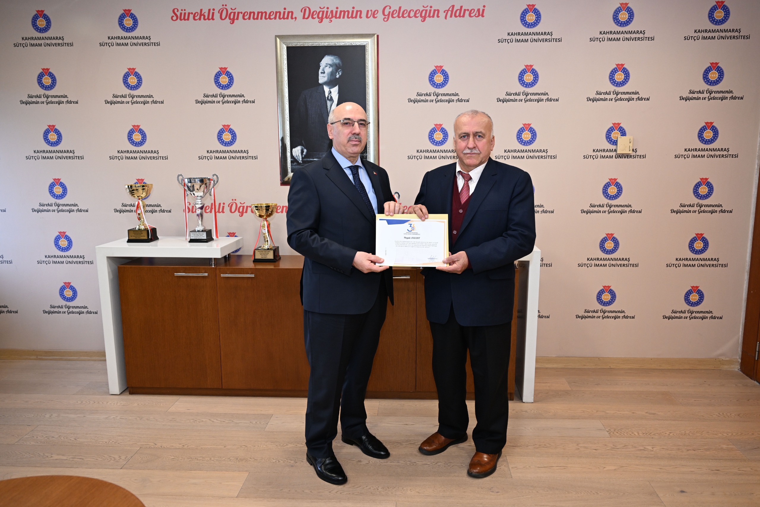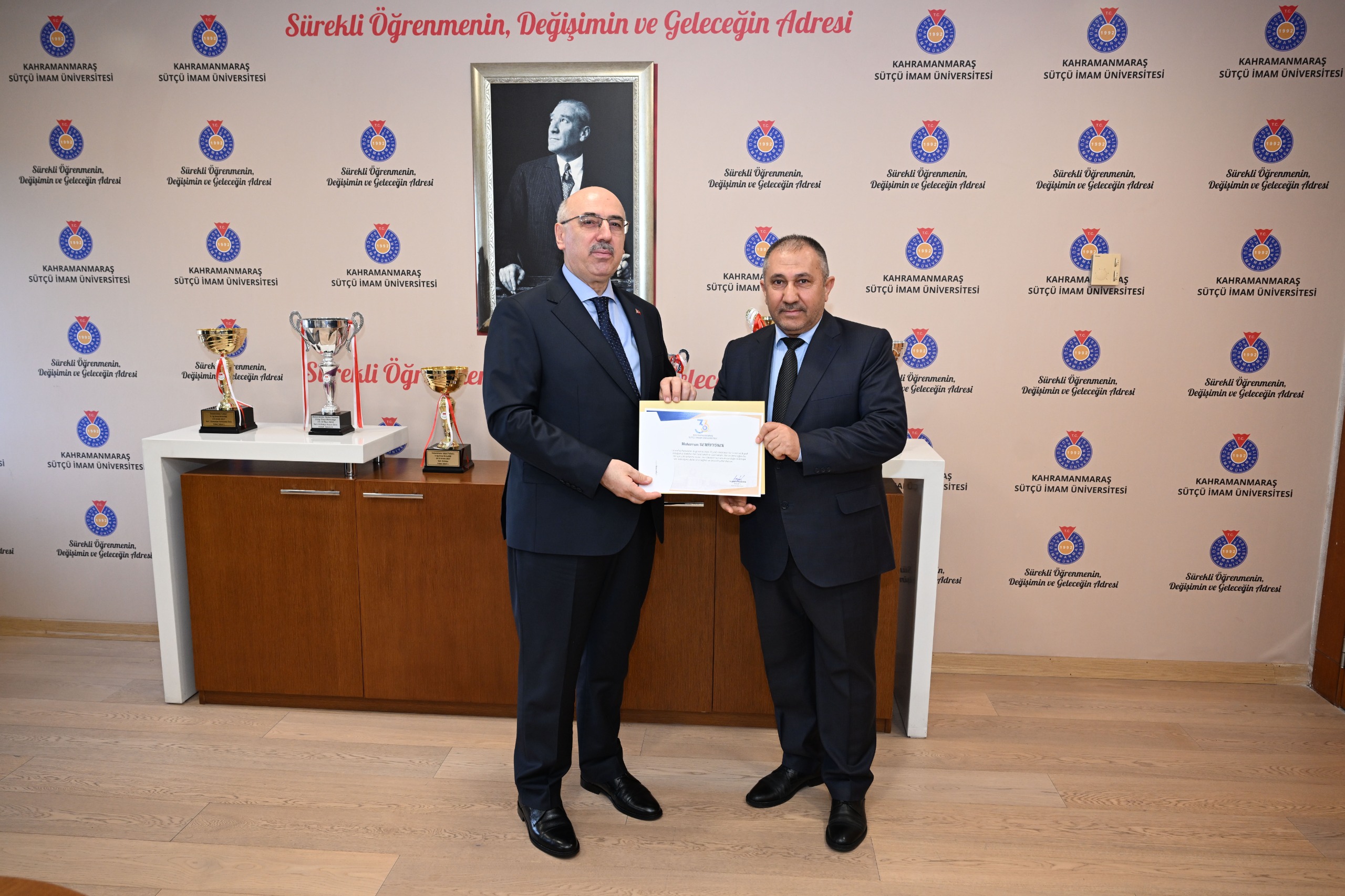 Kahramanmaraş Sütçü İmam Üniversitesi’nin 33. kuruluş yılı kapsamında, üniversitede 33 yılını dolduran akademik ve idari personele yönelik teşekkür belgesi takdim töreni düzenlendi. Senato toplantısı çerçevesinde Rektörlük Makamı Senato Salonu’nda gerçekleştirilen programda, uzun yıllar boyunca üniversiteye hizmet eden personele emek ve katkılarından dolayı teşekkür belgeleri verildi.