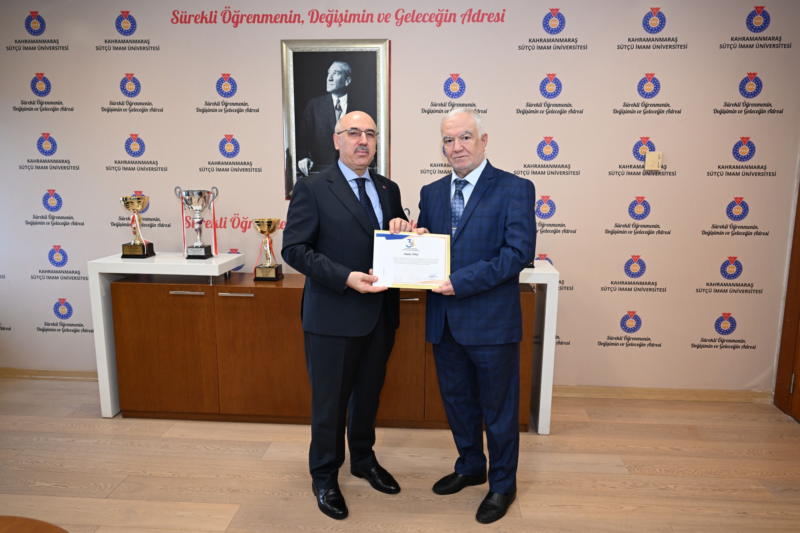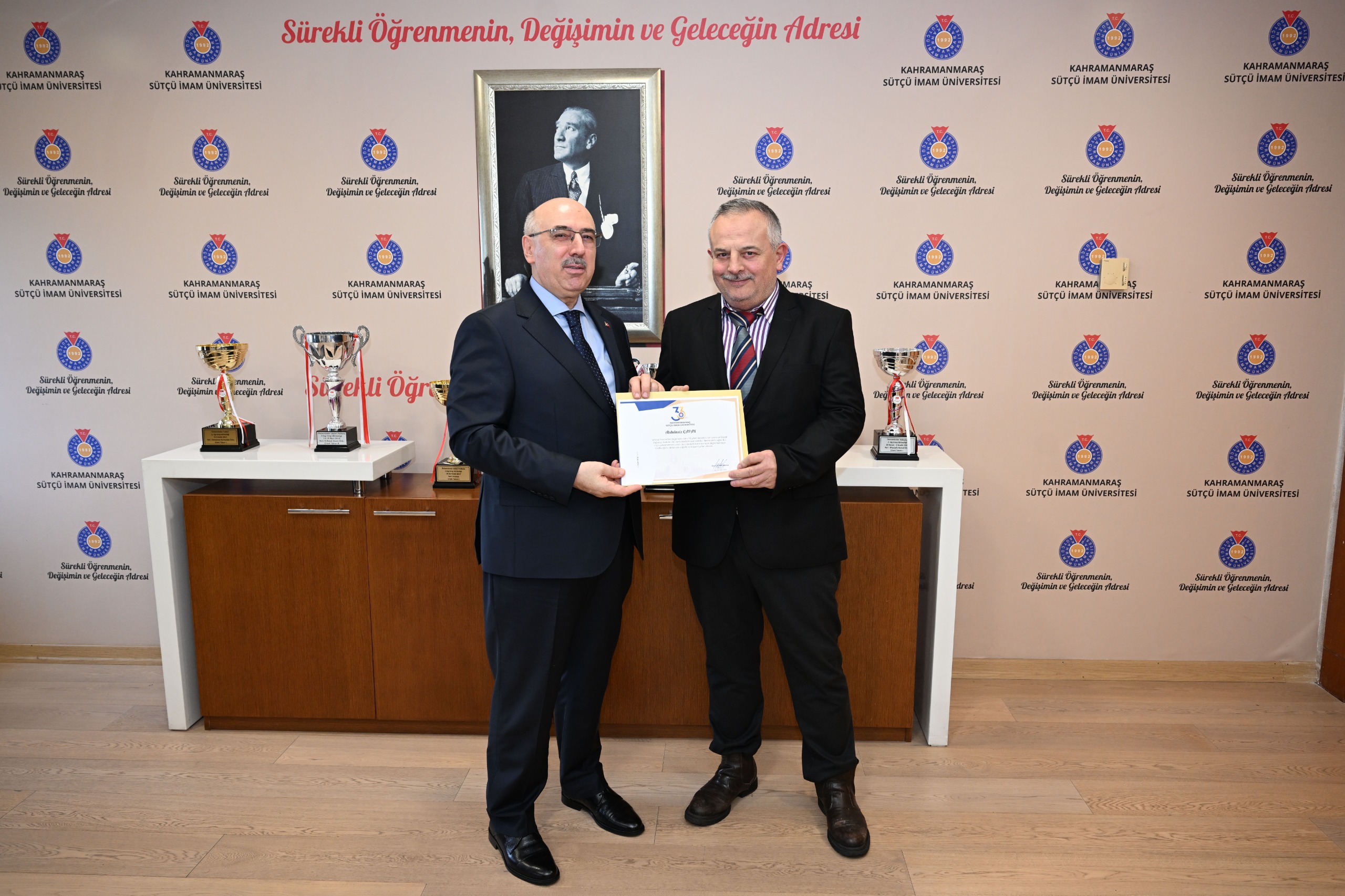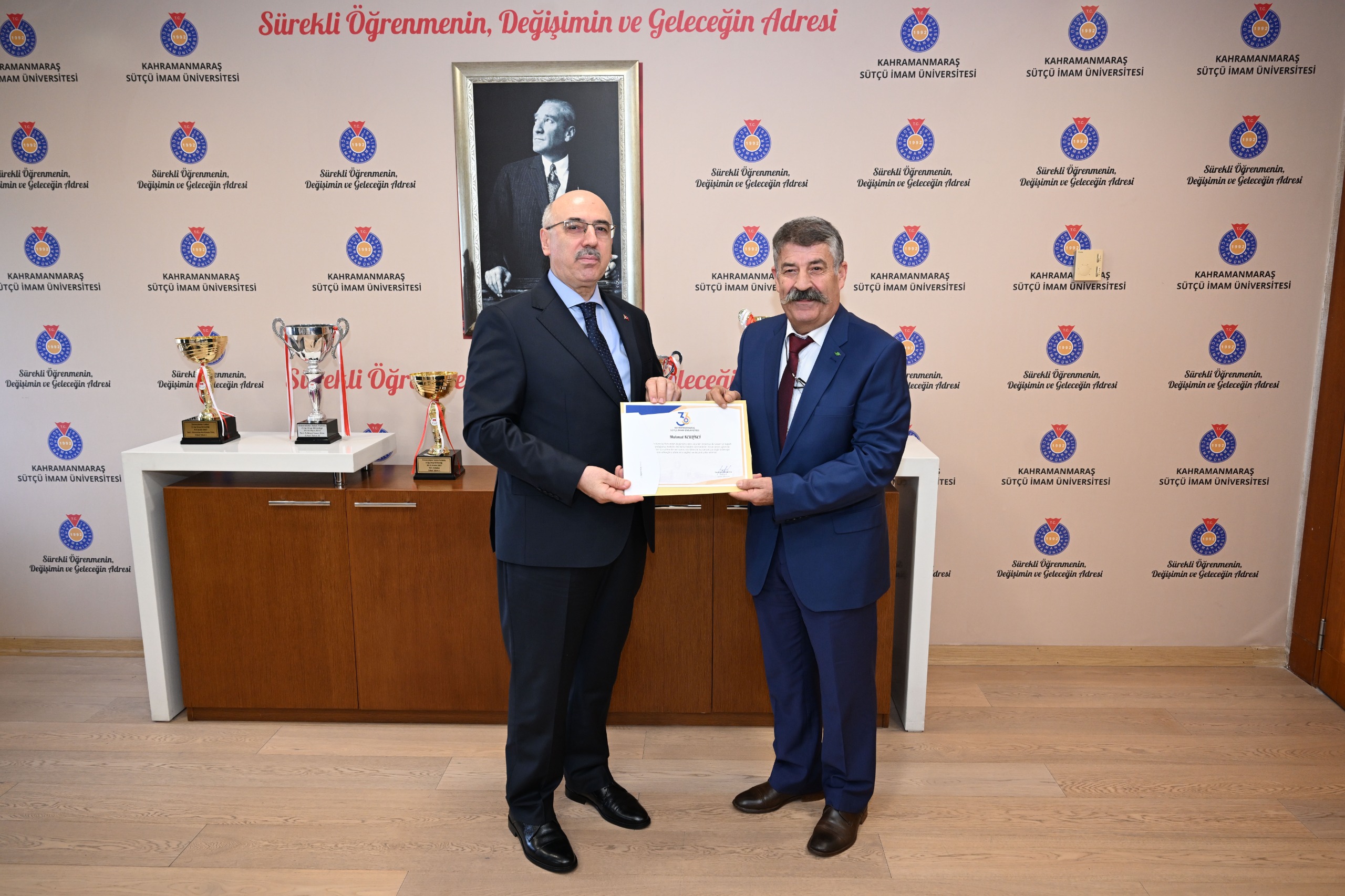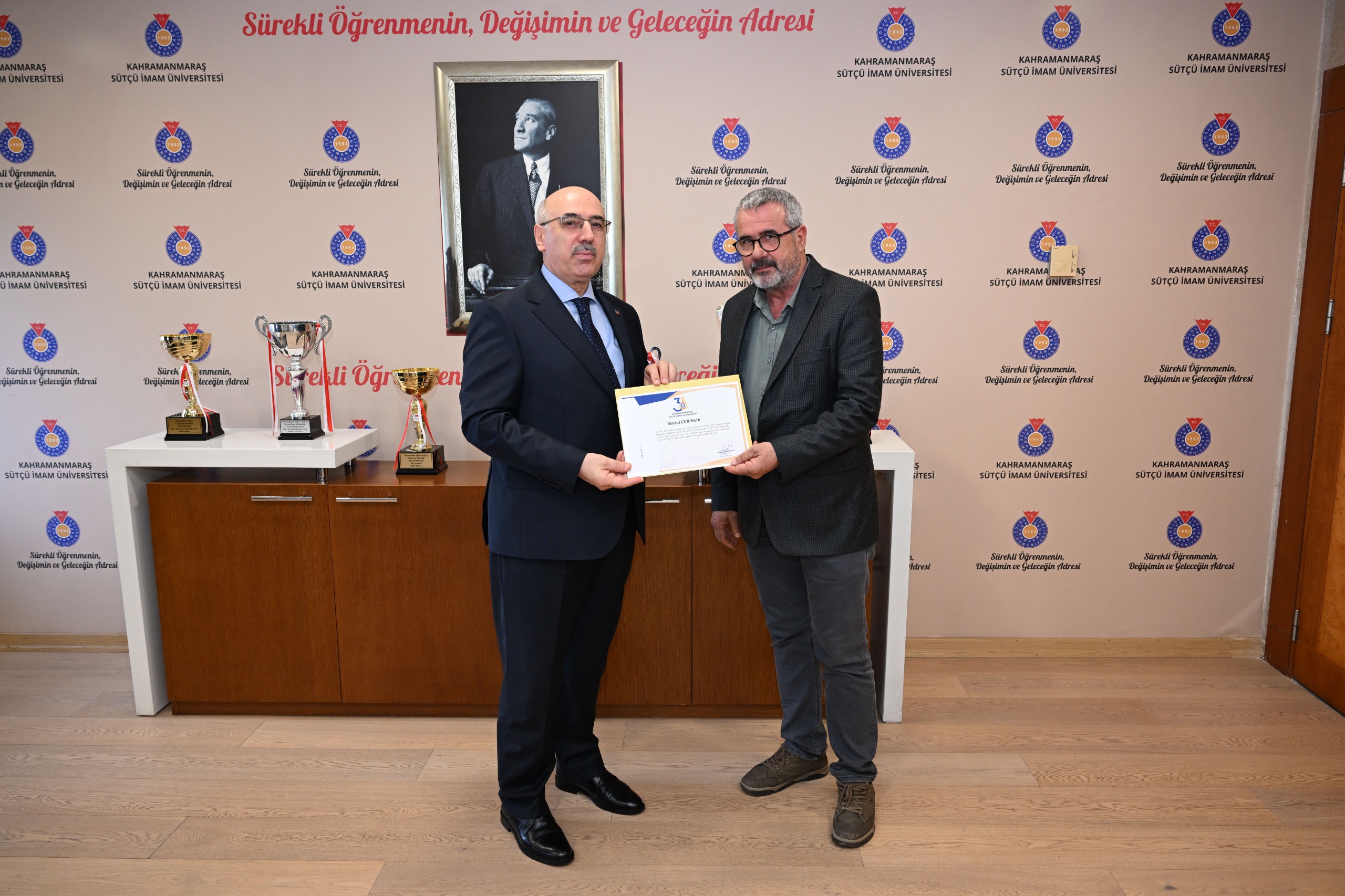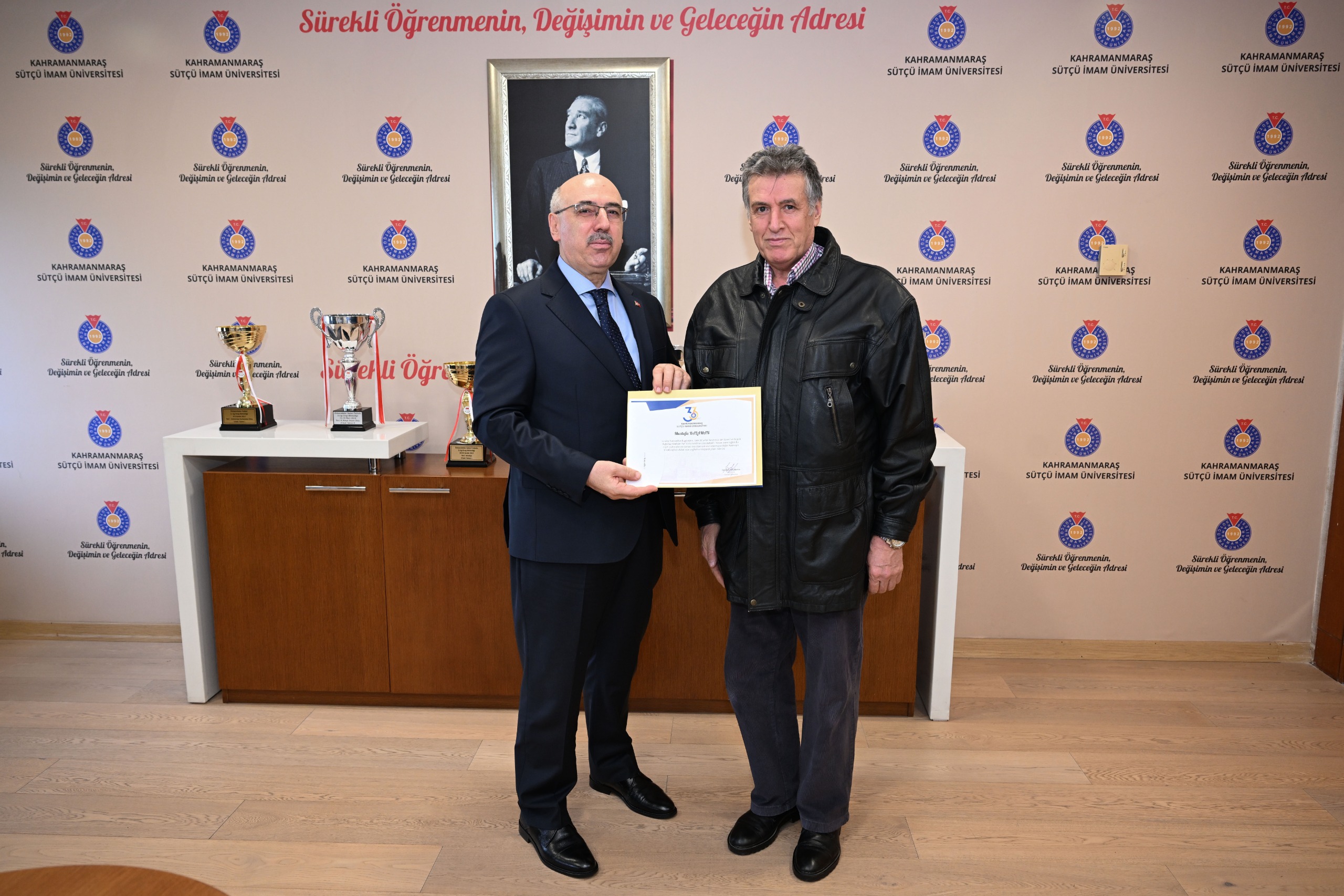 Kahramanmaraş Sütçü İmam Üniversitesi’nin 33. kuruluş yılı kapsamında, üniversitede 33 yılını dolduran akademik ve idari personele yönelik teşekkür belgesi takdim töreni düzenlendi. Senato toplantısı çerçevesinde Rektörlük Makamı Senato Salonu’nda gerçekleştirilen programda, uzun yıllar boyunca üniversiteye hizmet eden personele emek ve katkılarından dolayı teşekkür belgeleri verildi.