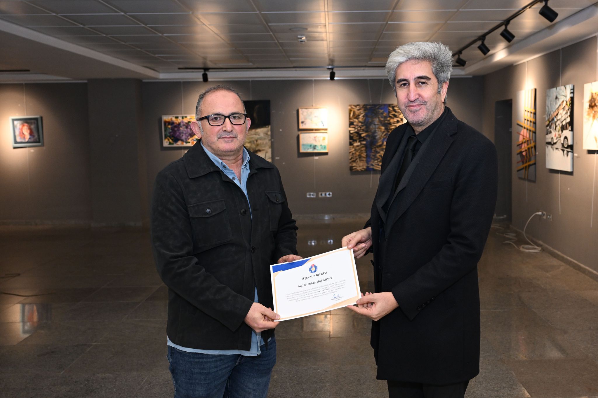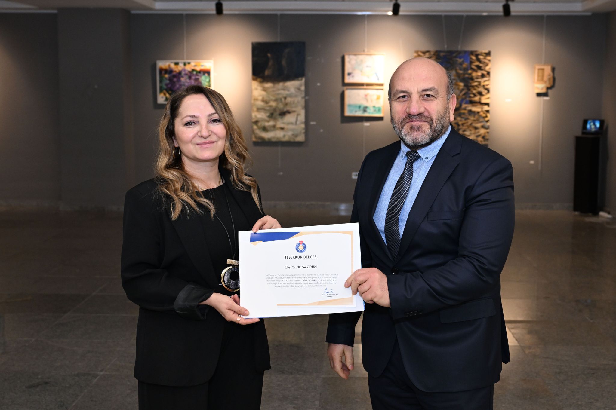 Açılış töreni, sergi küratörü ve seçici kurul üyelerine belge takdimi ve günün anısına çekilen hatıra fotoğrafı ile sona erdi.