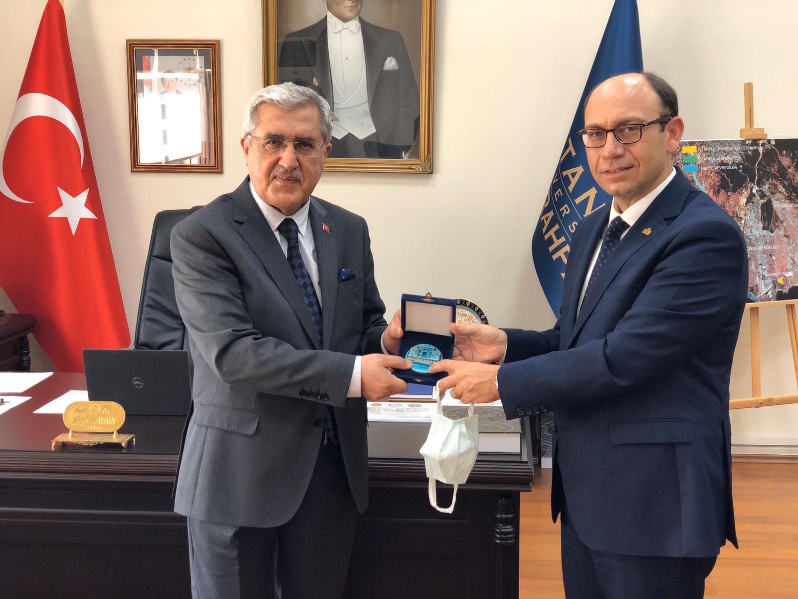 Bir dizi toplantı ve görüşmeye katılmak üzere İstanbul’da bulunan Kahramanmaraş Sütçü İmam Üniversitesi Rektörü Prof. Dr. Niyazi Can, İstanbul Üniversitesi-Cerrahpaşa Rektörü Prof. Dr. Nuri Aydın ile bir araya gelerek, üniversite meselelerine ilişkin görüş alışverişi gerçekleştirdi.
