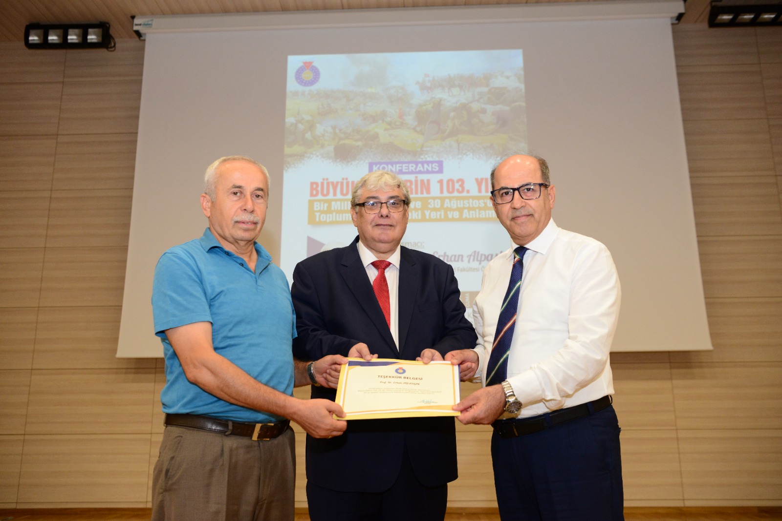 Programda KSÜ İnsan ve Toplum Bilimleri Fakültesi Tarih Bölümü Cumhuriyet Tarihi Anabilim Dalı Öğretim Üyesi Prof. Dr. Erhan Alpaslan, “Büyük Zaferin 103. Yılı: Bir Milletin Dirilişi ve 30 Ağustos’un Toplumsal Bellekteki Yeri ve Anlamı” başlıklı konferans verdi.