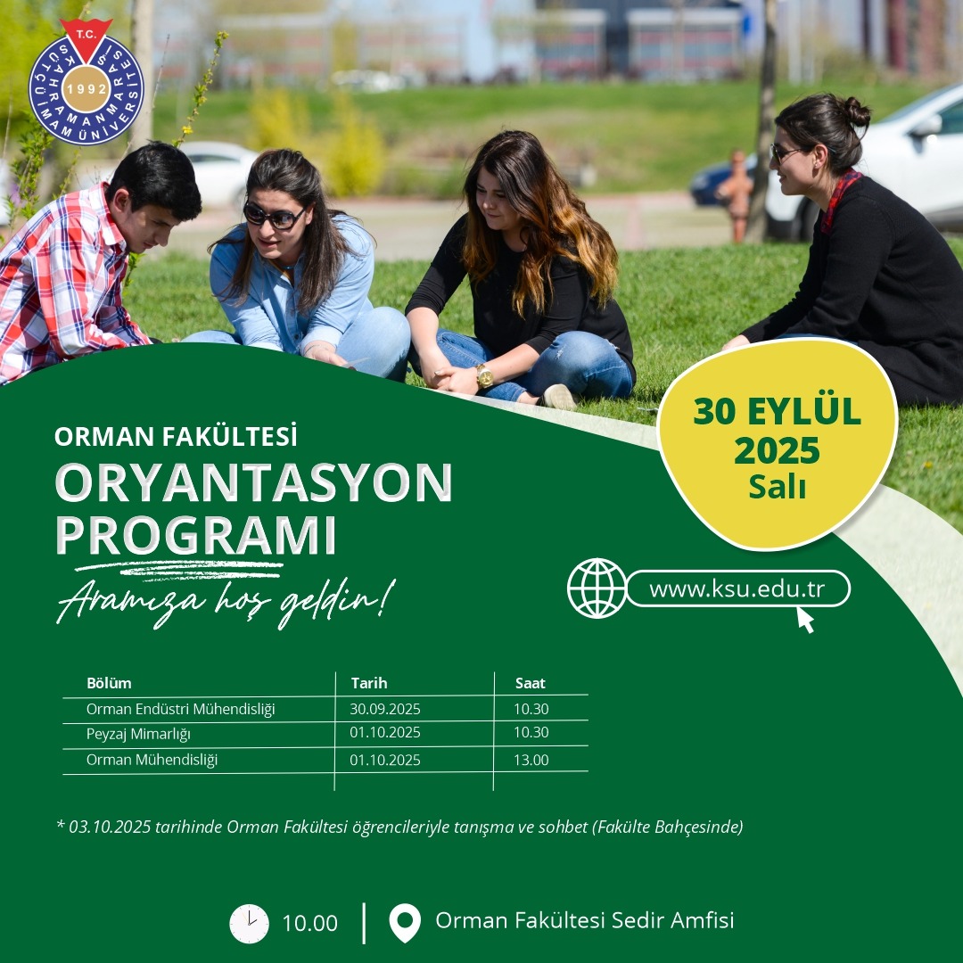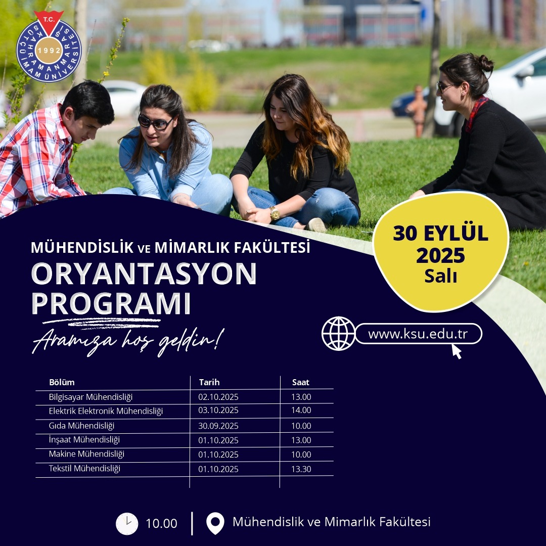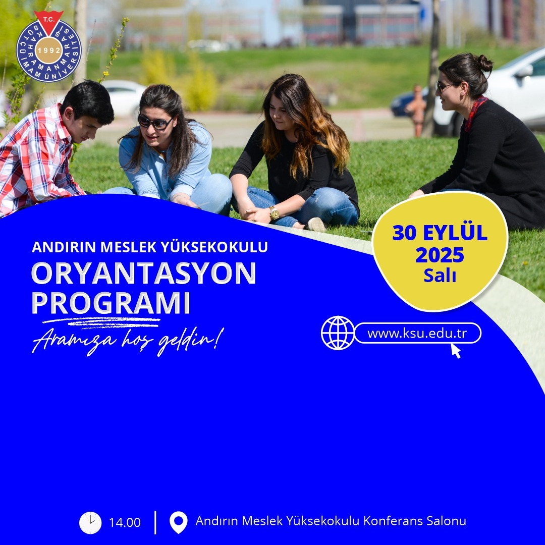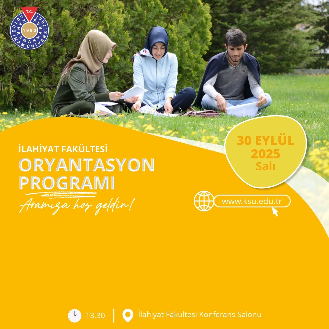 2025-2026 Akademik Yılında Kahramanmaraş Sütçü İmam Üniversitesi (KSÜ) bölüm ve programlarına yerleşen öğrencilerin üniversite ve çevreyle uyum sağlamalarını kolaylaştırmak amacıyla oryantasyon programı gerçekleştirilecek.