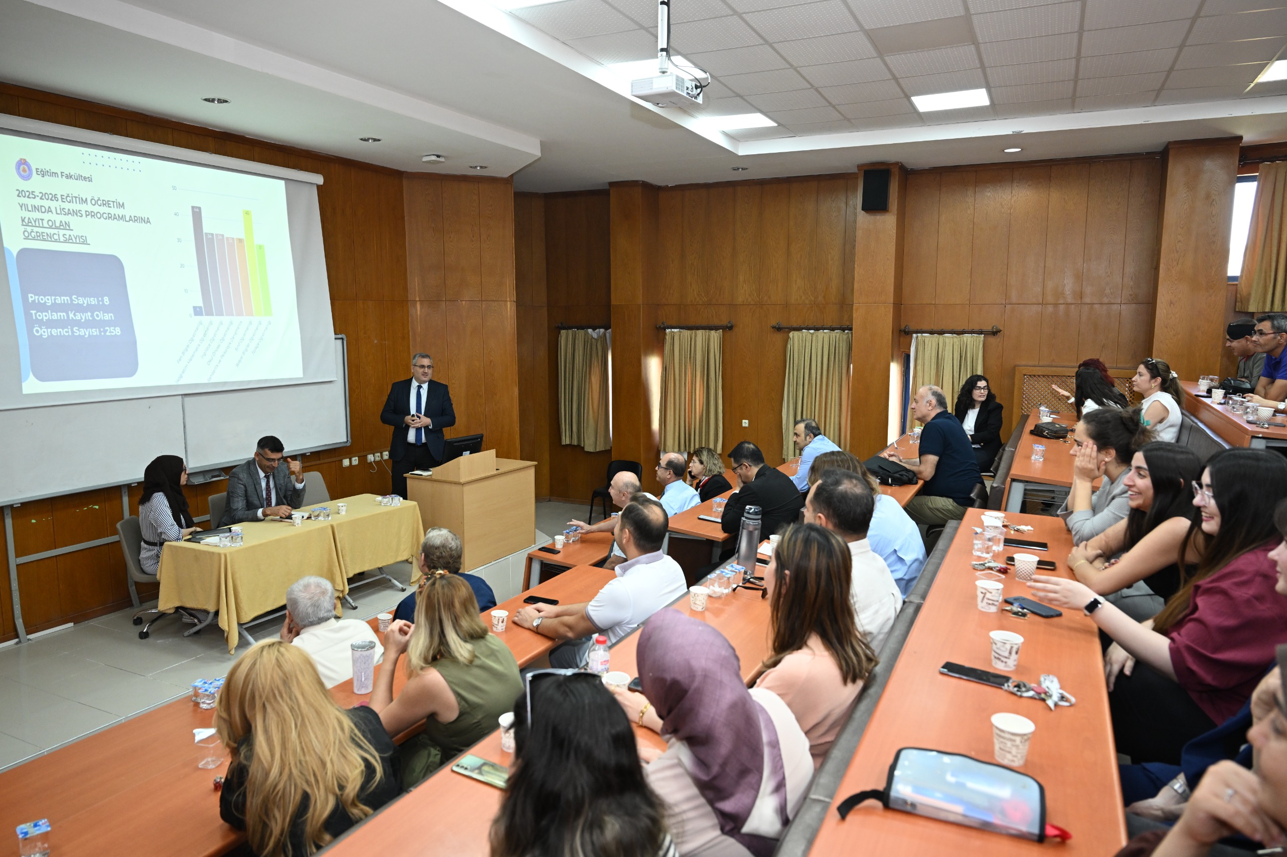 Toplantıda fakültenin akademik yapısı, kadro ve unvan yükselmeleri ile fakülteye yeni katılan öğretim elemanları hakkında bilgi verildi. 8 programa toplam 258 öğrencinin kayıt yaptırdığı belirtilirken, bölüm kontenjanları ve doluluk oranları paylaşıldı. Fakültede öğretim elemanı başına düşen 33 öğrencilik oranla Türkiye ortalamasının üzerine çıkıldığı ifade edildi.
