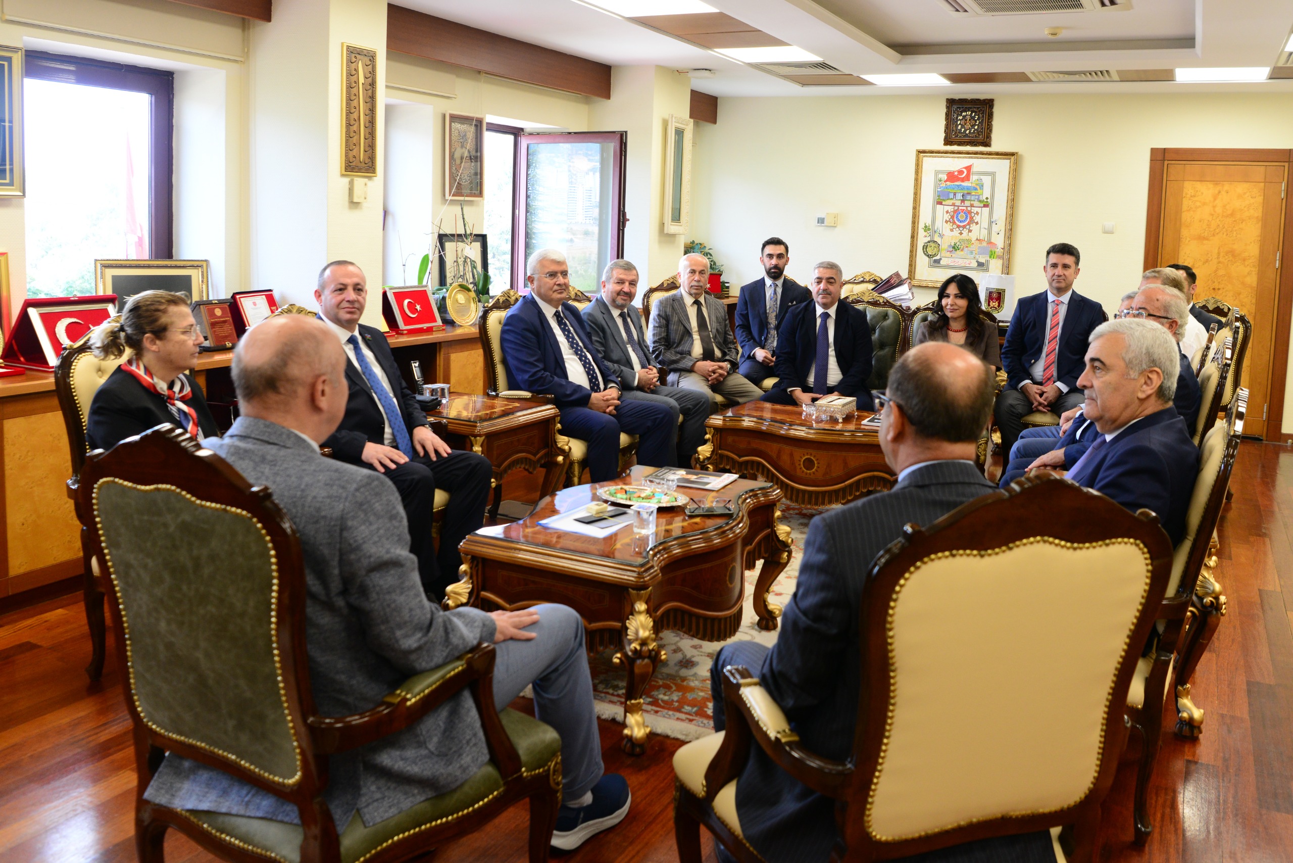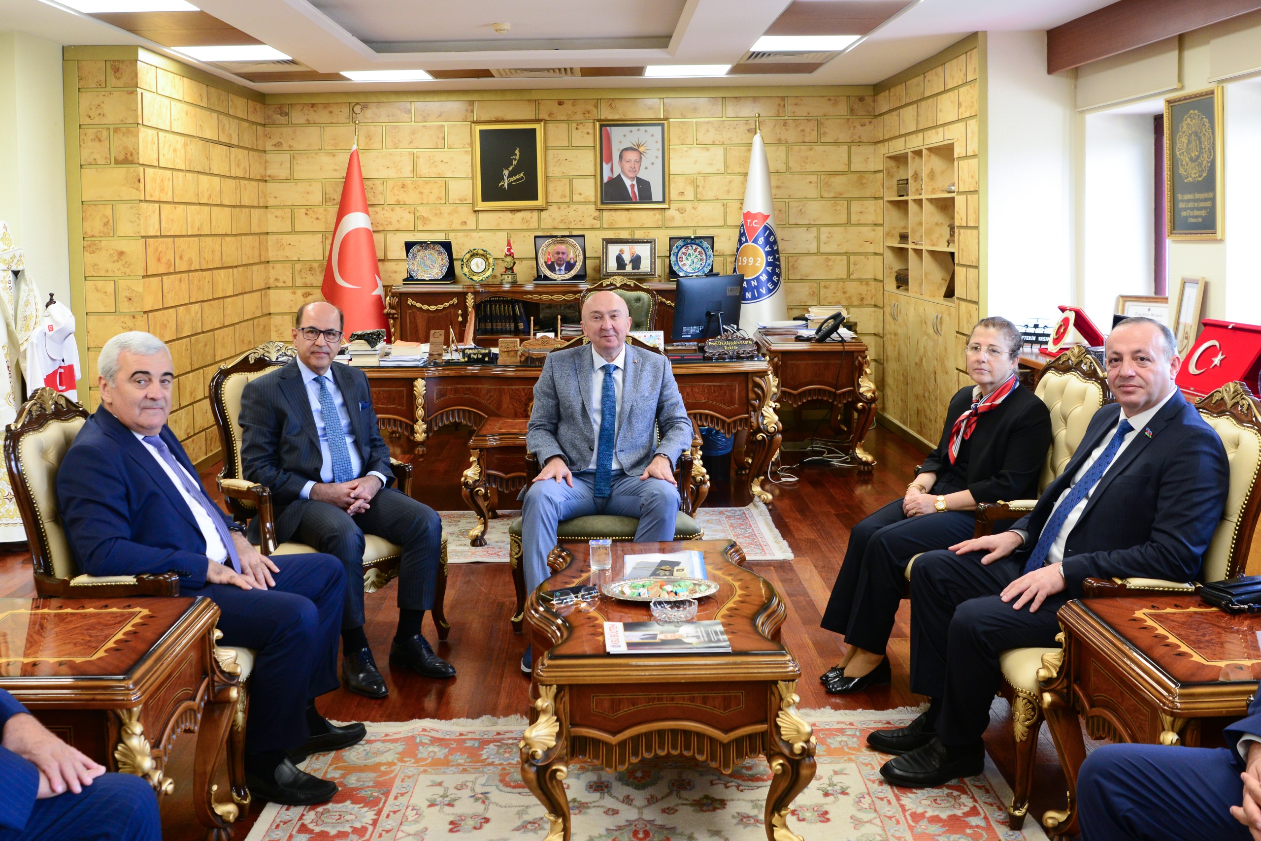 Rektör Prof. Dr. Alptekin Yasım’ı ziyaret eden heyette, Diaspora Bakan Yardımcısı Valeh Hacıyev, Azerbaycan Milletvekili Prof. Dr. Vasif Gafarov, Diaspora Destek Vakfı Başkanı Ekrem Abdullayev ve Türkiye-Azerbaycan Dernekleri Federasyonu Başkan Vekili Parviz Memmedzade yer aldı.