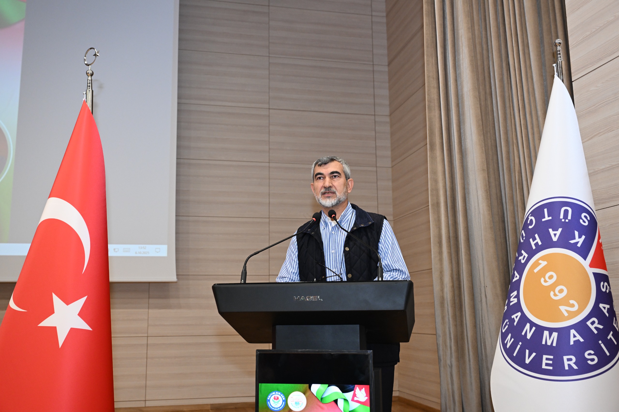 Kahramanmaraş Sütçü İmam Üniversitesinde (KSÜ), Eğitimciler Birliği Sendikası (Eğitim-Bir-Sen) Kahramanmaraş 2 No’lu Şube ile ÜNİAK Kahramanmaraş Şubesi iş birliğinde “Filistin Dünyanın Neresinde?” konulu konferans düzenlendi. Program, Yunus Emre Kongre ve Kültür Merkezi Nizâmî-i Gencevî Konferans Salonunda gerçekleştirildi.