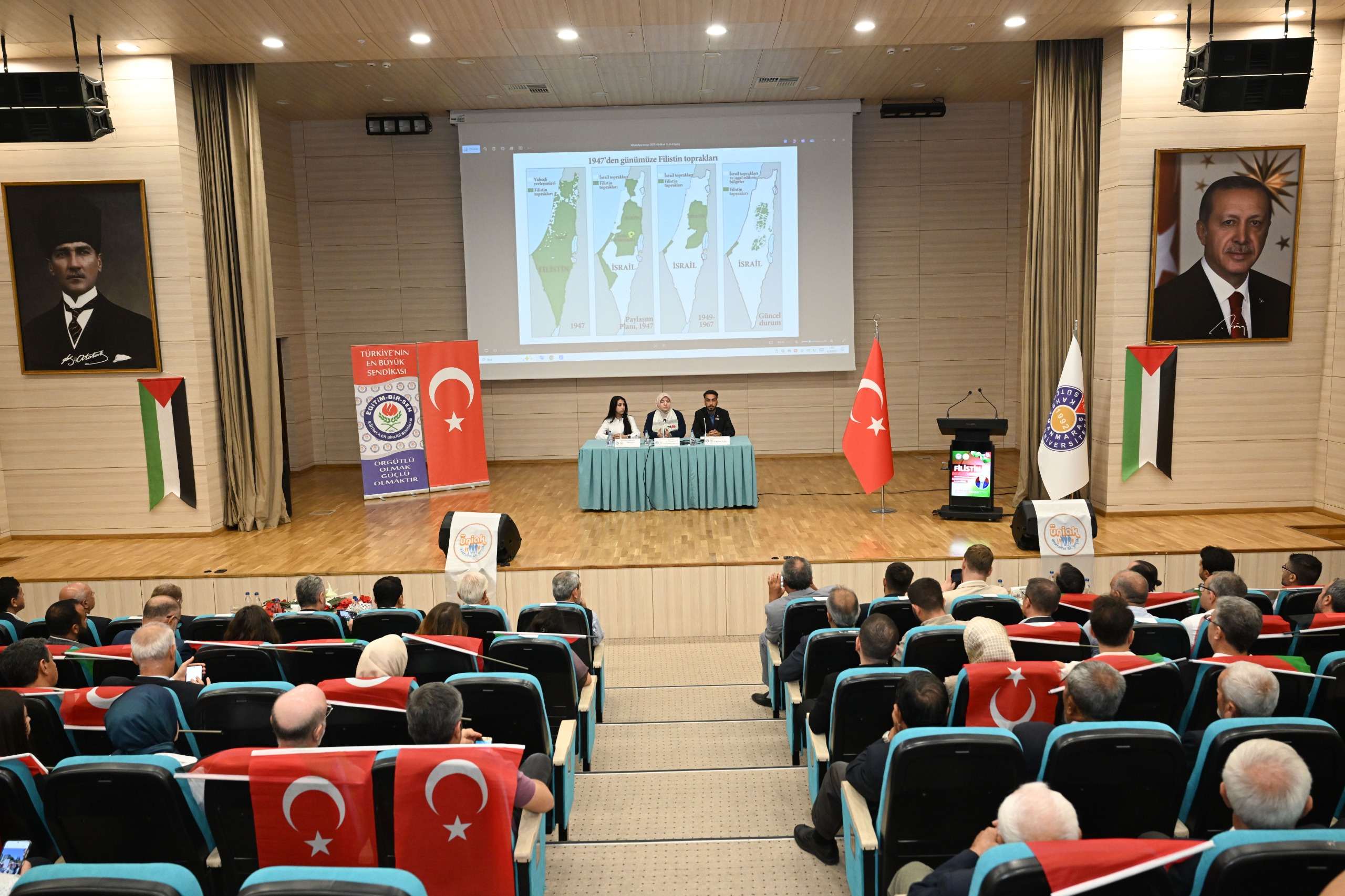 Eğitim-Bir-Sen Kahramanmaraş 2 No’lu Şube Başkanı Prof. Dr. Veli Aba ise selamlama konuşmasında, “Filistin dünyanın neresinde diye sorsak, birçok farklı cevap alırız. Ancak bana göre Filistin insanlığın ortak vicdanındadır. Tüm dünyadan vicdan sahibi insanlar, zulme karşı koymak için Müslümanlarla aynı safta yer alıyor. Artık Filistin sadece toprakları işgal edilmiş bir devlet değil, insanlığın onur mücadelesinin sembolüdür.” ifadelerini kullandı.