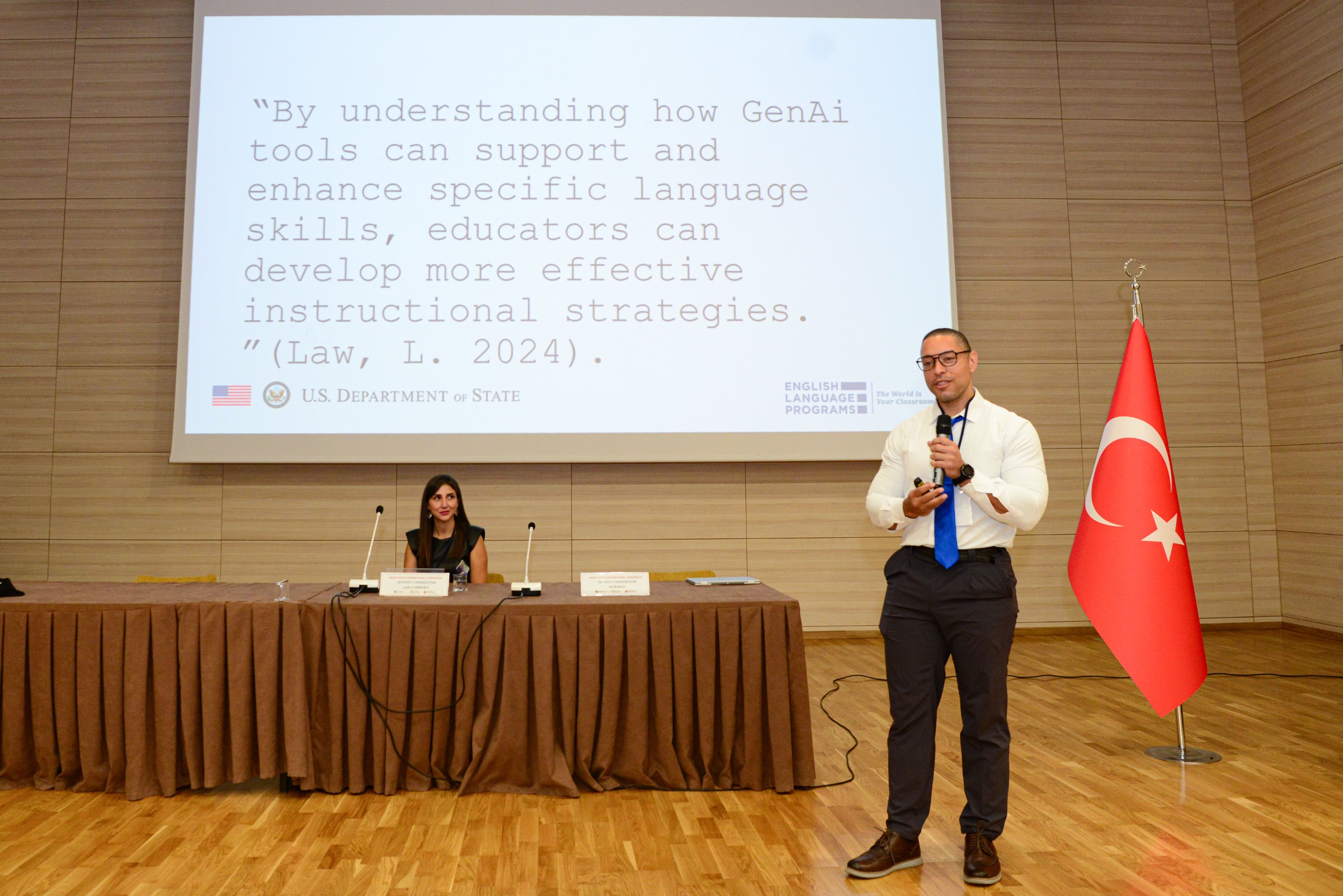 Konferansın ilk gününde, Prof. Dr. Abdulvahit Çakır, Vincent Greenier, Esen Metin, Prof. Dr. Azize Chalak ve Rabia Hoş “Keynote Speaker” olarak katılımcılara hitap etti. Gün boyu eş zamanlı olarak çevrim içi ve yüz yüze oturumlar gerçekleştirildi. Oturumlarda, İngilizce öğretiminde yapay zekâ uygulamaları, öğretmen özerkliği, dijital okuryazarlık ve eğitimde etik konular ele alındı.